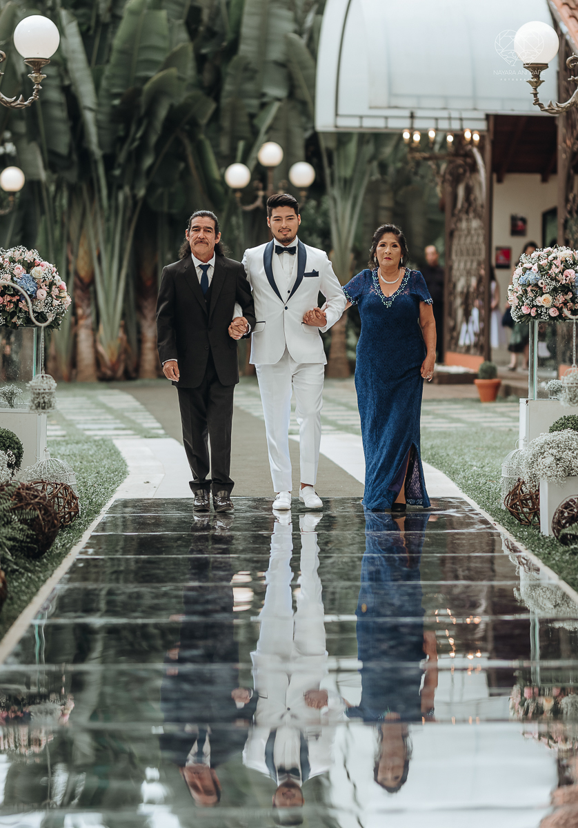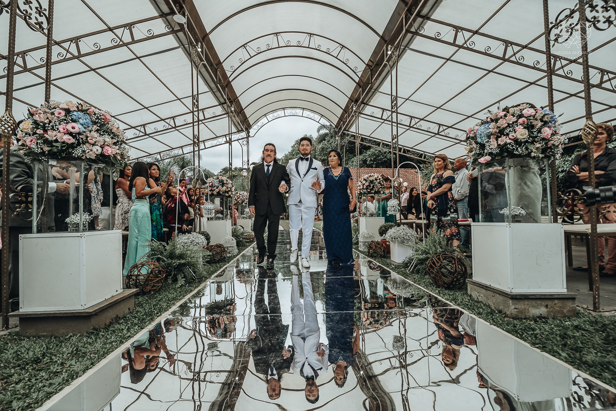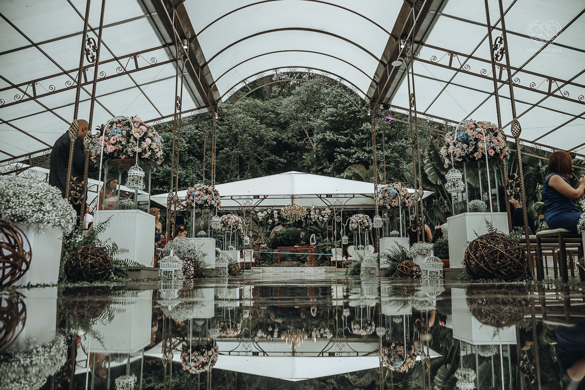casamento de dia no ravena garden ao ar livre noivo com roupa branca noiva com mantilha fotos pela fotografa premiada nayara andrade de santos casamento com passarela espelhadacasamento de dia no ravena garden ao ar livre noivo com roupa branca noiva com