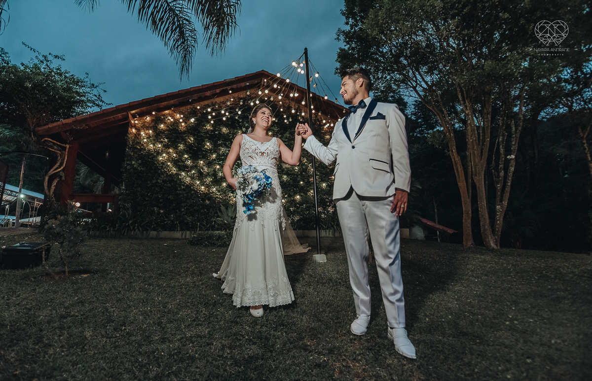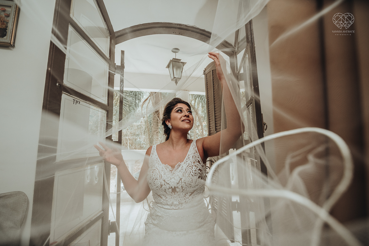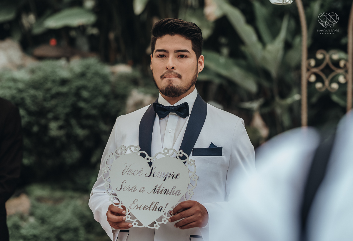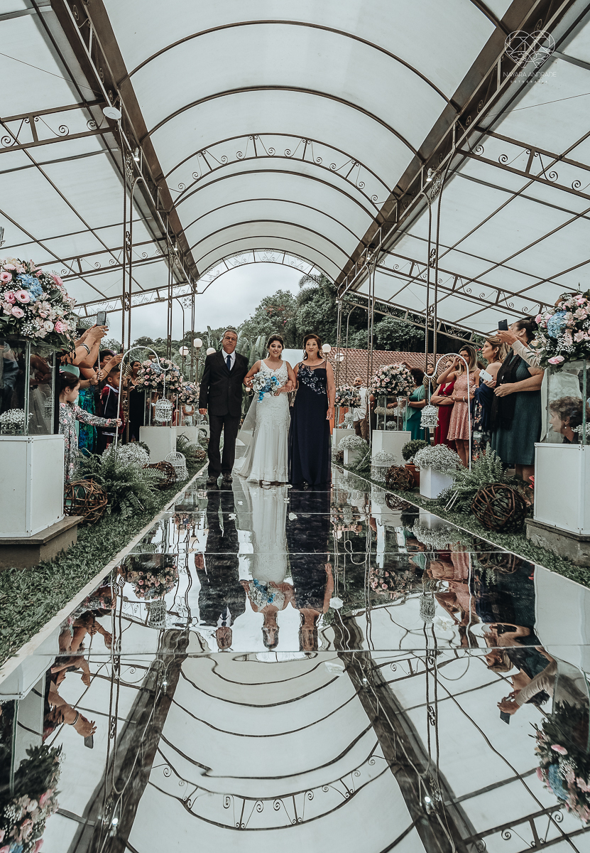 casamento de dia no ravena garden ao ar livre noivo com roupa branca noiva com mantilha fotos pela fotografa premiada nayara andrade de santos casamento com passarela espelhada