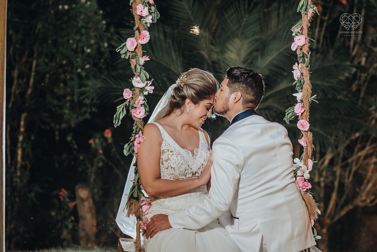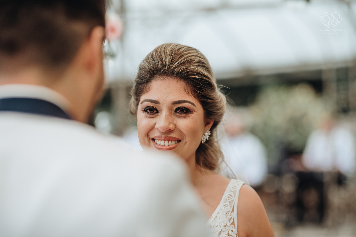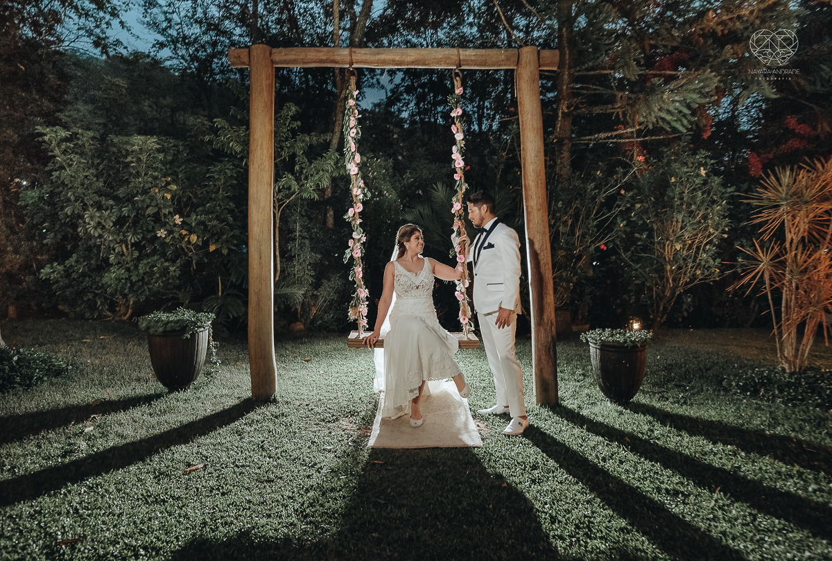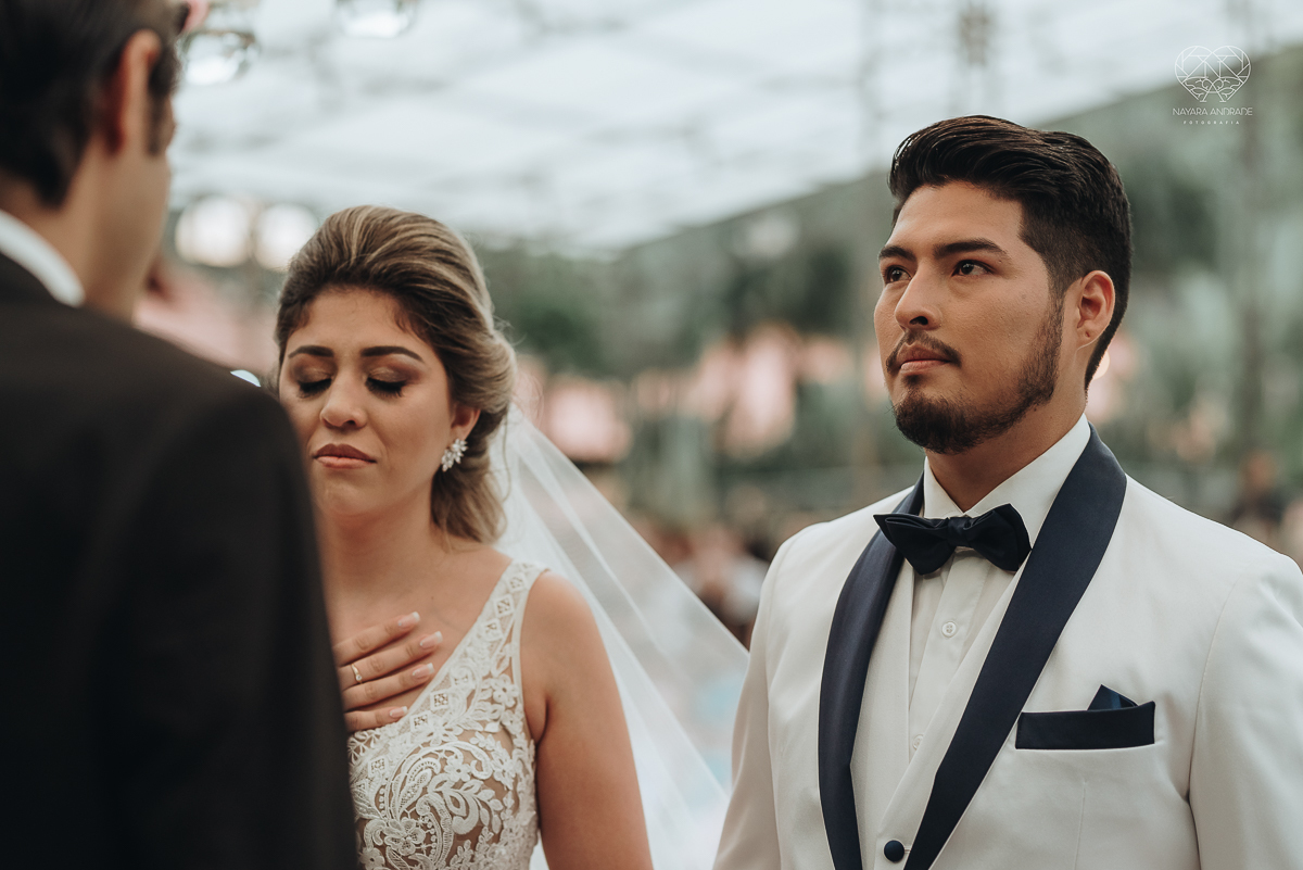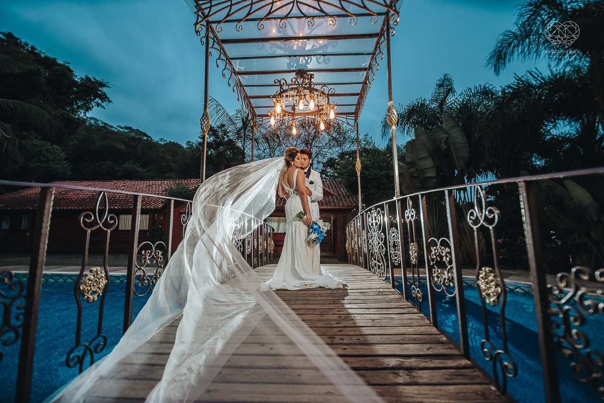 casamento de dia no ravena garden ao ar livre noivo com roupa branca noiva com mantilha fotos pela fotografa premiada nayara andrade de santos casamento com passarela espelhada