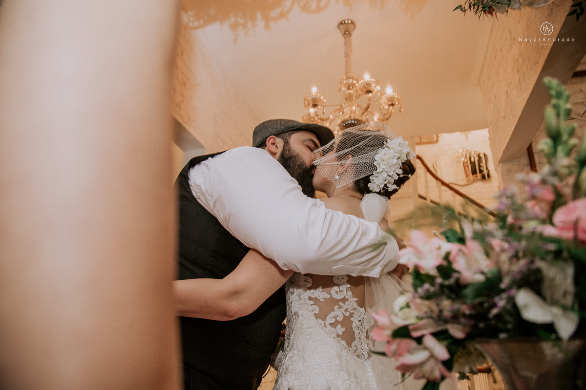 casamento rustico noturno no casinha quintal em sao paulo. Noivo de boina e gravata borboleta, noiva de chapeu. Nayara Andrade Fotografa