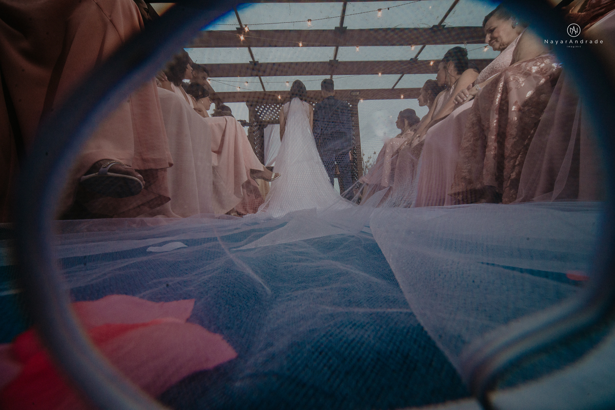 Desde o carinho do primeiro encontro na reunião, nossa aventura no ensaio ( que ate NOivos versão motoqueiros teve), todos os comentarios e acompanhamentos de cada casal onde Alan e Elaine vibravam creio que já pensando: Nosso dia irá chegar e nossas fotos estarão lá. E enfim chegou! Atrasou um pouco, o céu não era quele como sonhado mas TODAS AS COISAS ESTAVAM DE ACORDO COM A VONTADE DE DEUS. Mesmo com o melhor Pôr do Sol do mundo, ninguém tiraria os olhos do casal, quanta emoção, quanta alegria e quanto amor!