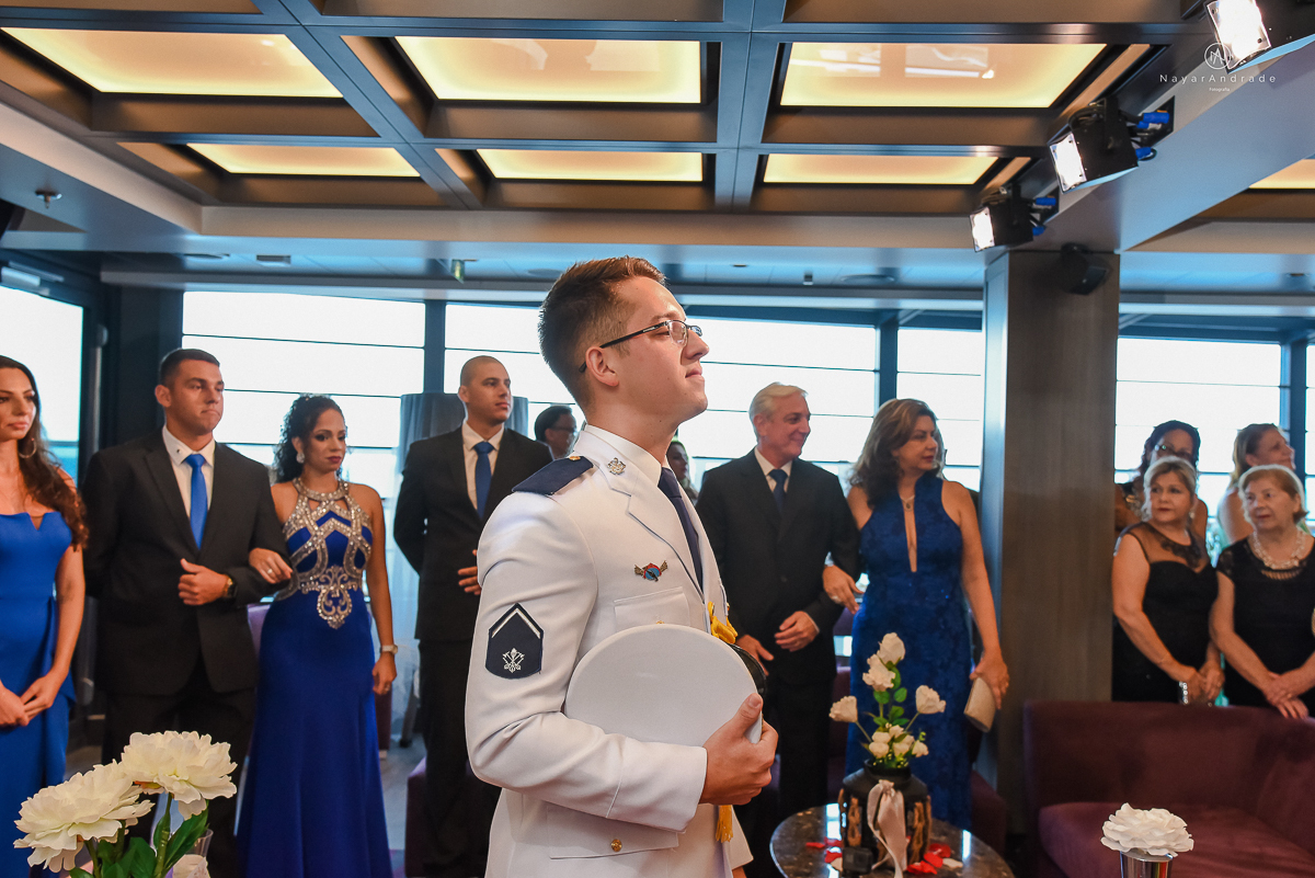 casamento no navio msc seaview noivo bombeiro usando farda fotografia feita pela fotografa nayara andrade de santos festa no navio de casamento
