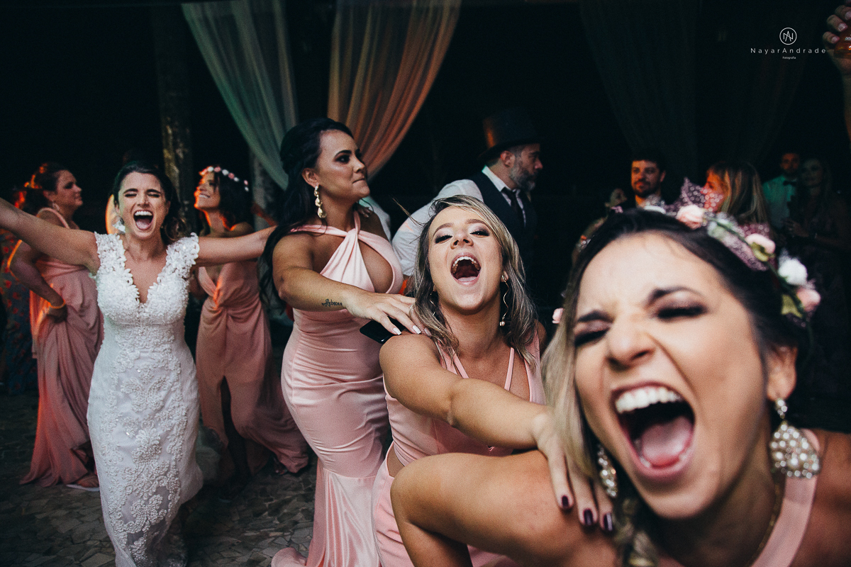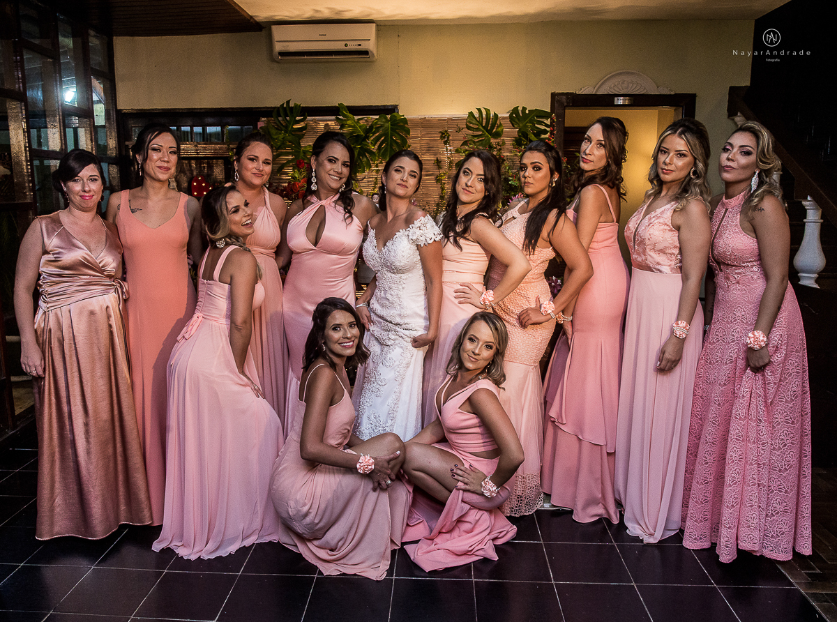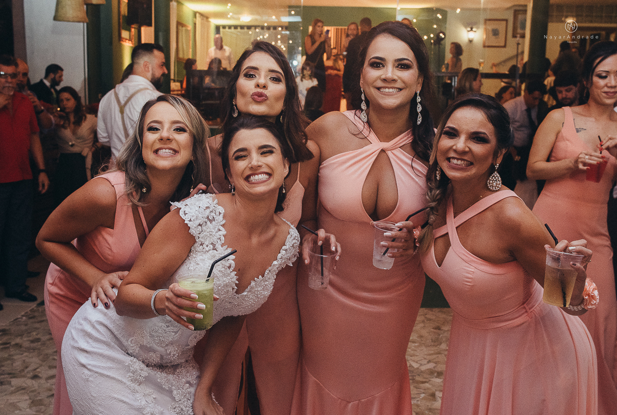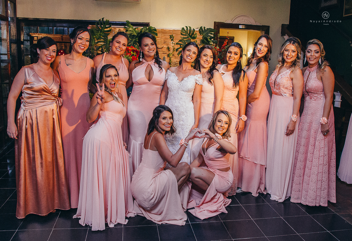 madrinhas no dia da noiva de robe rrosa rose salmao comemorando com a noiva