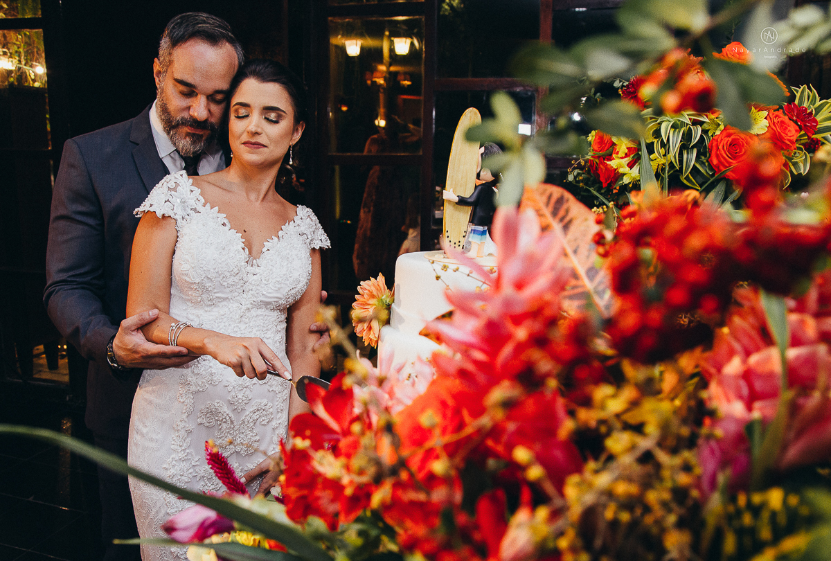 fotos externas feitas em sao vicente santos na subida do ilha porchat com o por do sol casal vestidos de noivo na praia