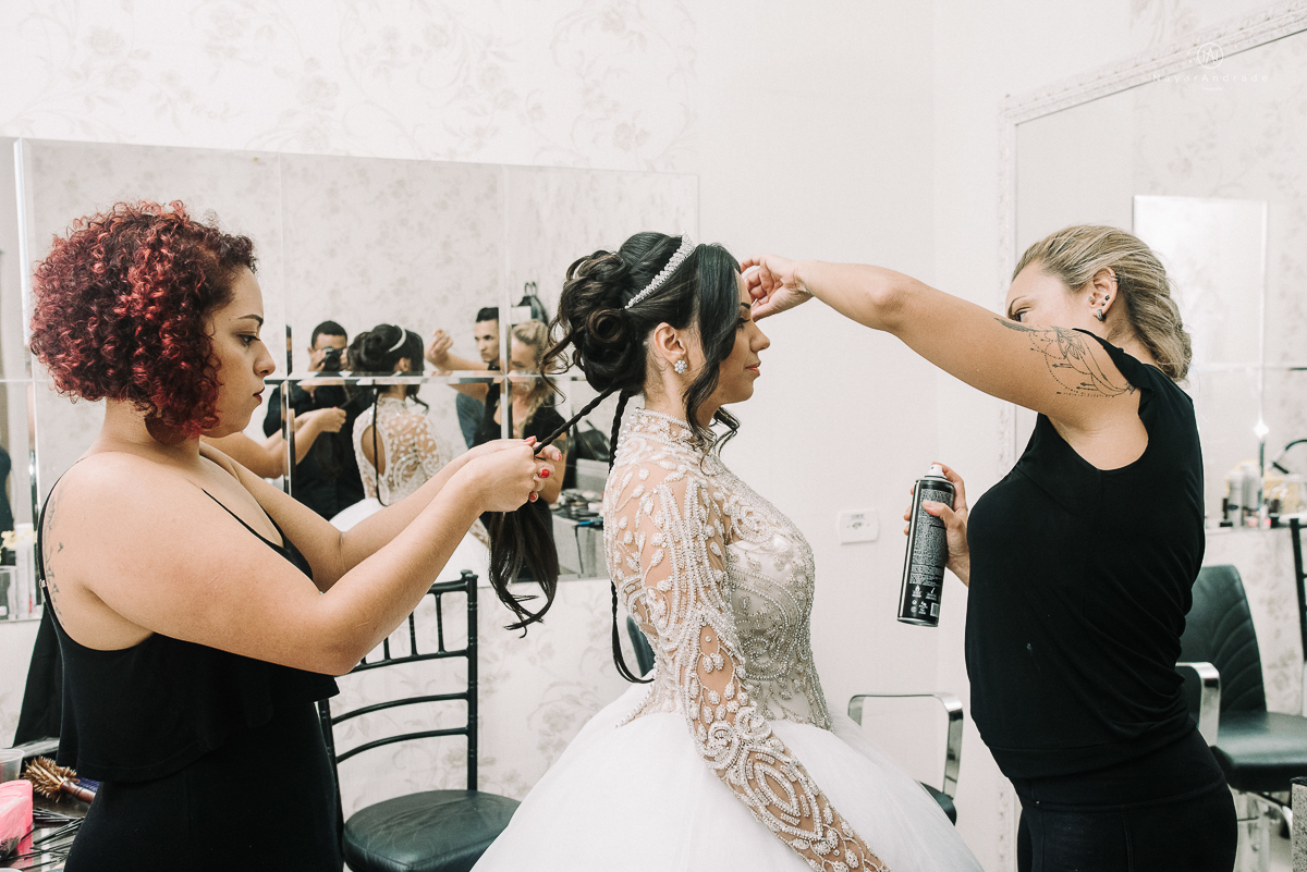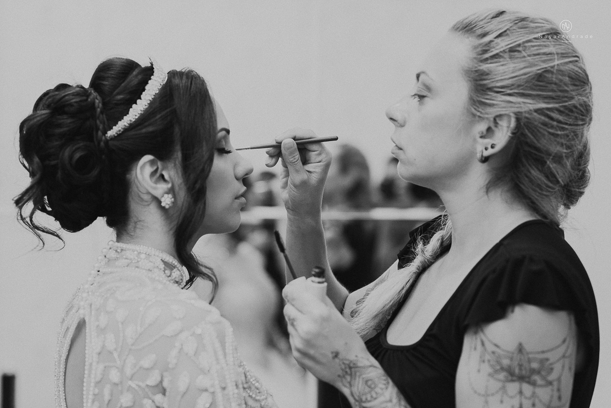 foto da noiva se arrumando no making of de casamento no castelo