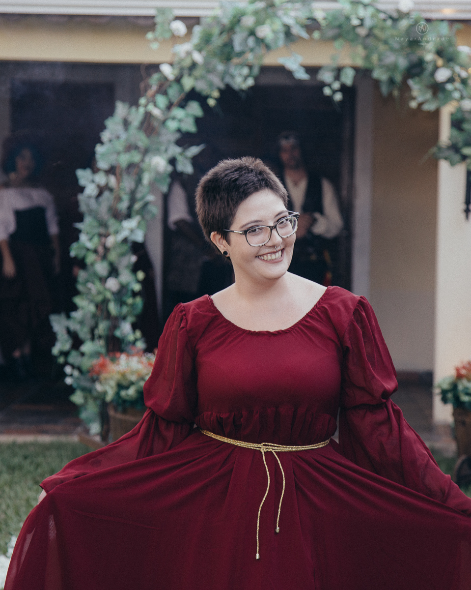Casamento ao ar livre no campo tematico pirata e princesa no jardim das orquideas em praia grande decoraçao marsala vermelho e madeira rustica