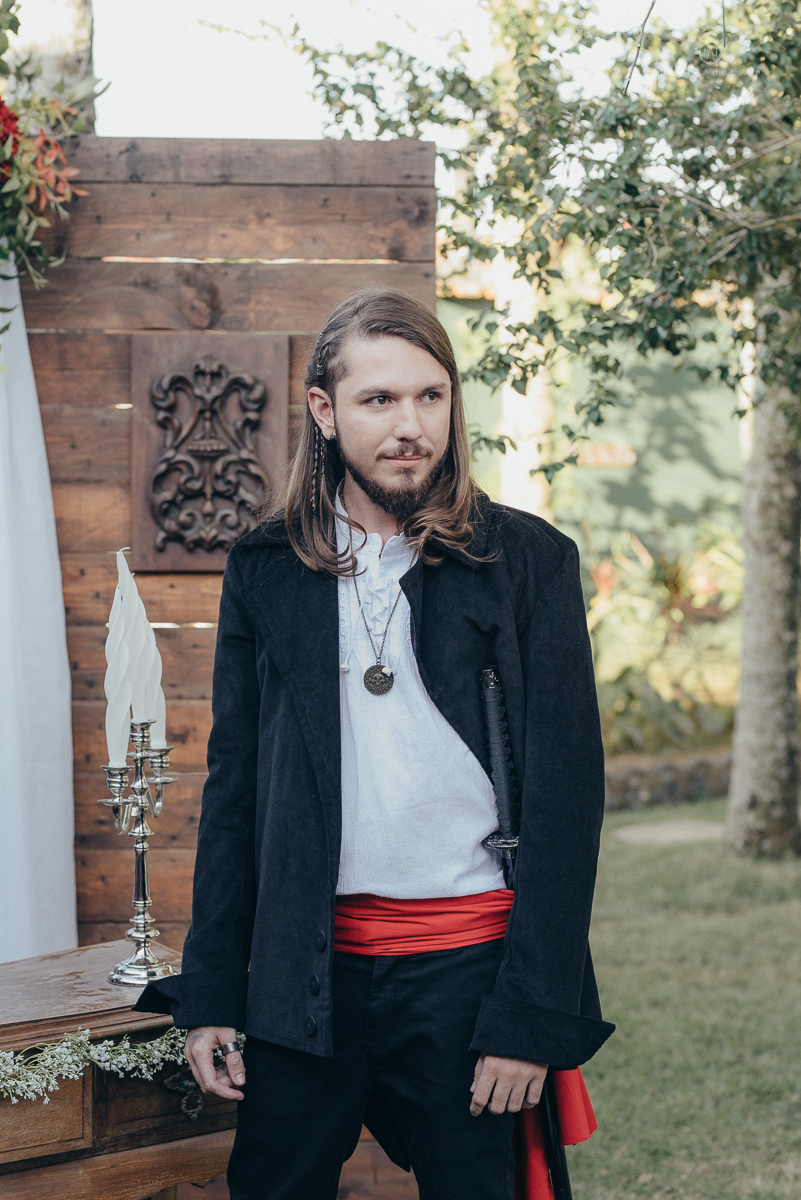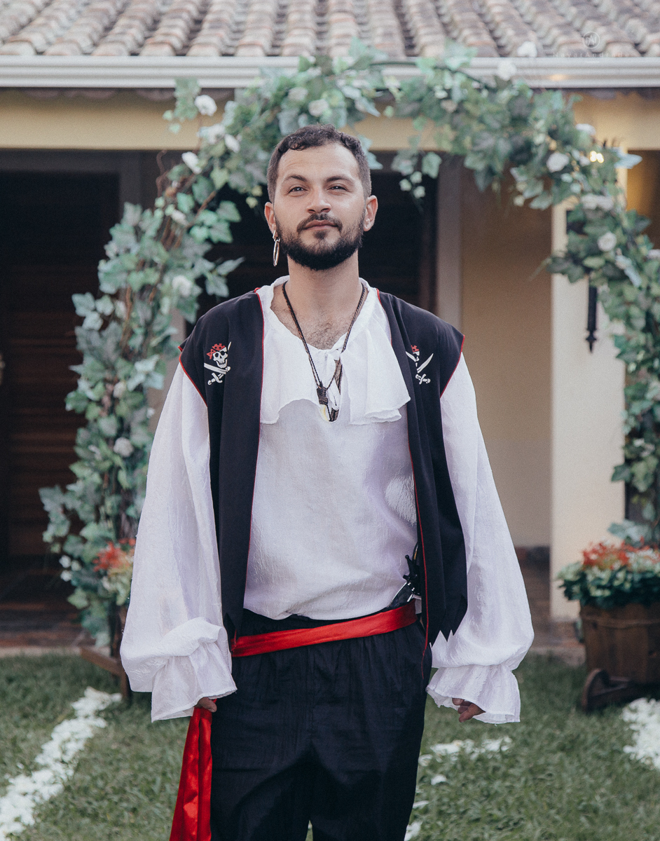 Noivo vestido de pirata em dia de casamento making of do noivo