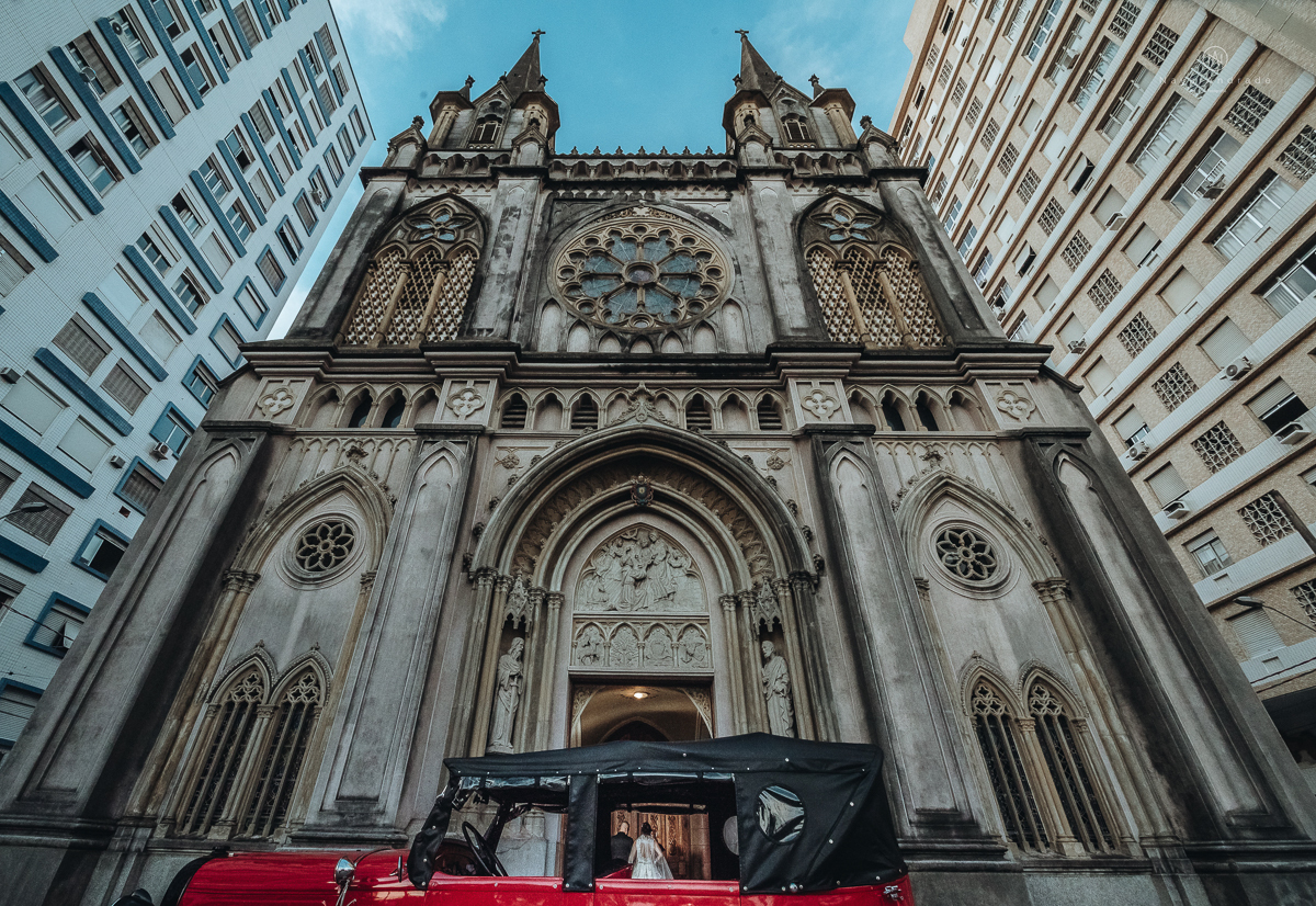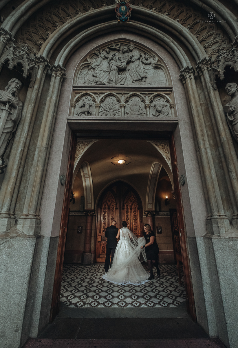 Foto de casamento realizado na igreja basilica do embare em santos sem tapete . lindas fotos mostrando toda a arquitetura da igreja