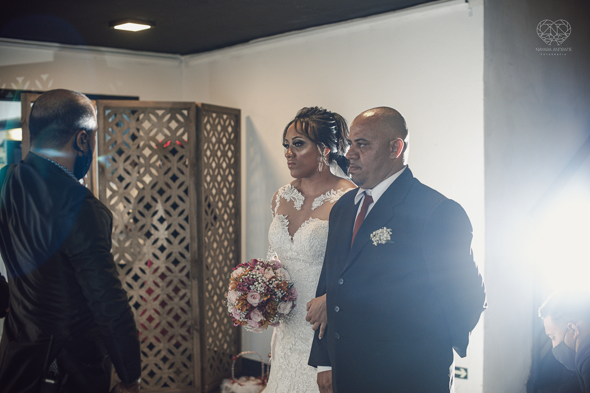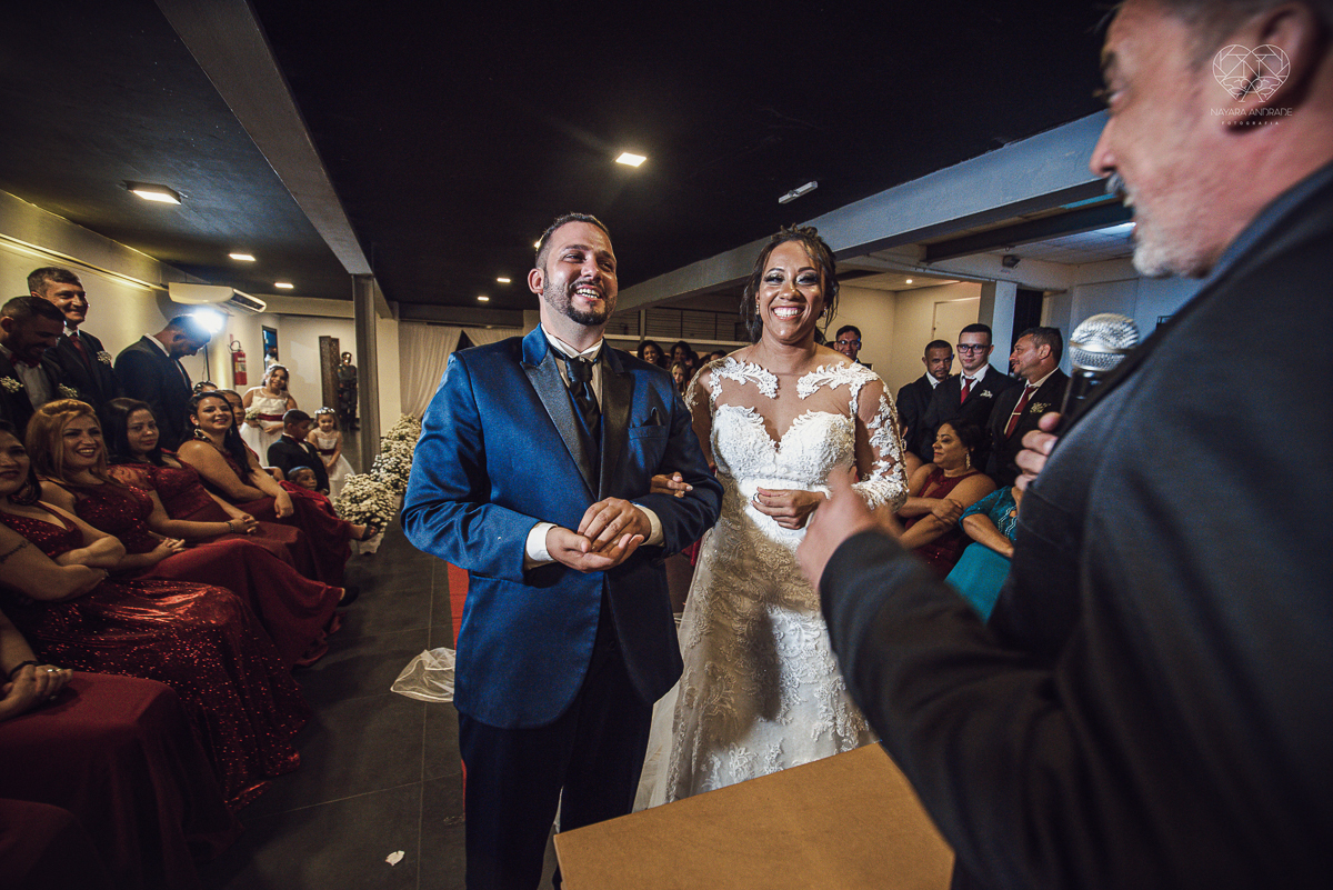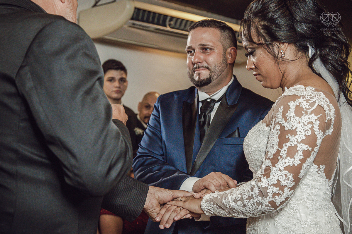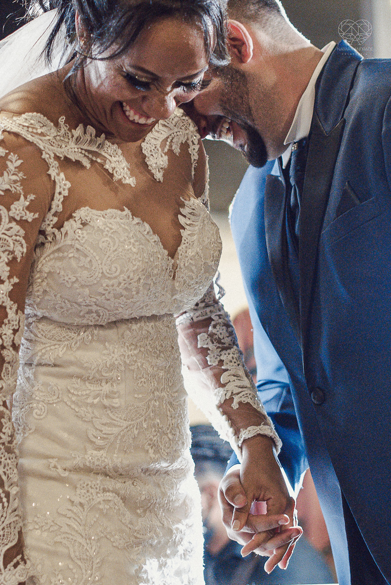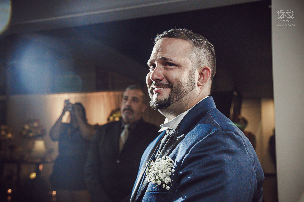 Fotografia de casamento no centro de santos realizado pela fotografa premiada nayara andrade casamento classico no centro de santos na docks santos noivo chorando emocionado em entrada de noiva