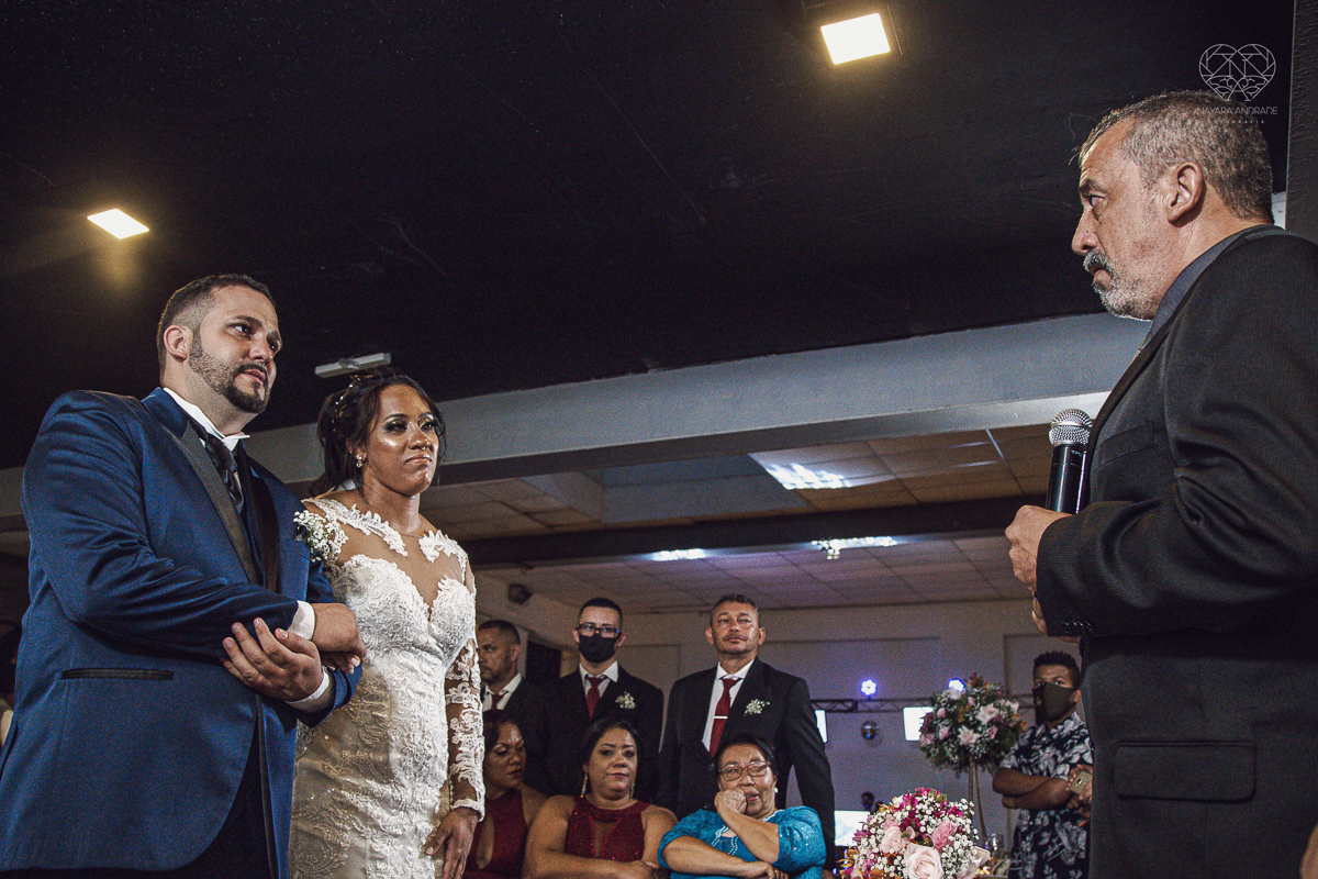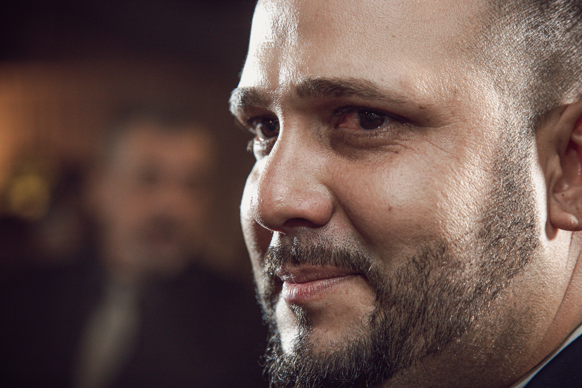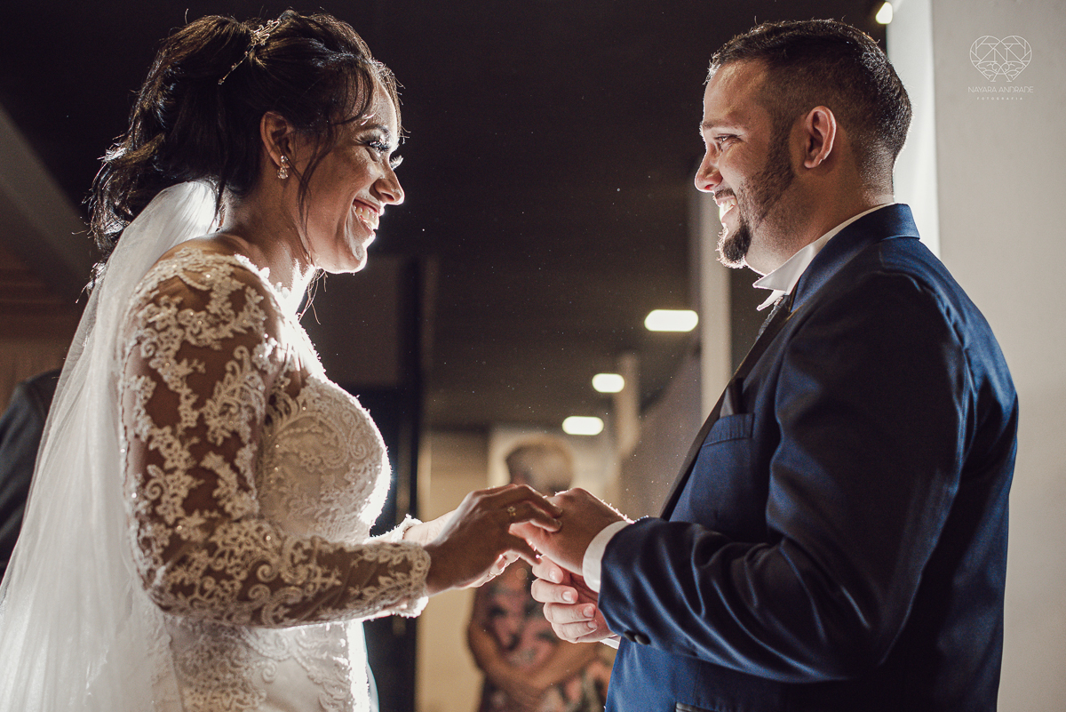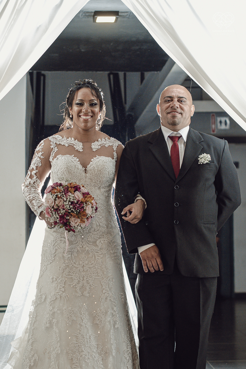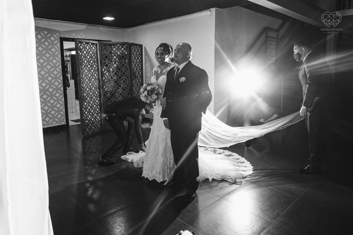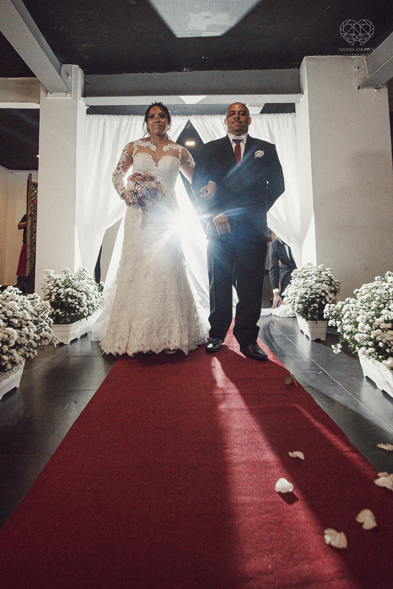 Fotografia de casamento no centro de santos realizado pela fotografa premiada nayara andrade casamento classico no centro de santos na docks santos noivo chorando emocionado em entrada de noiva