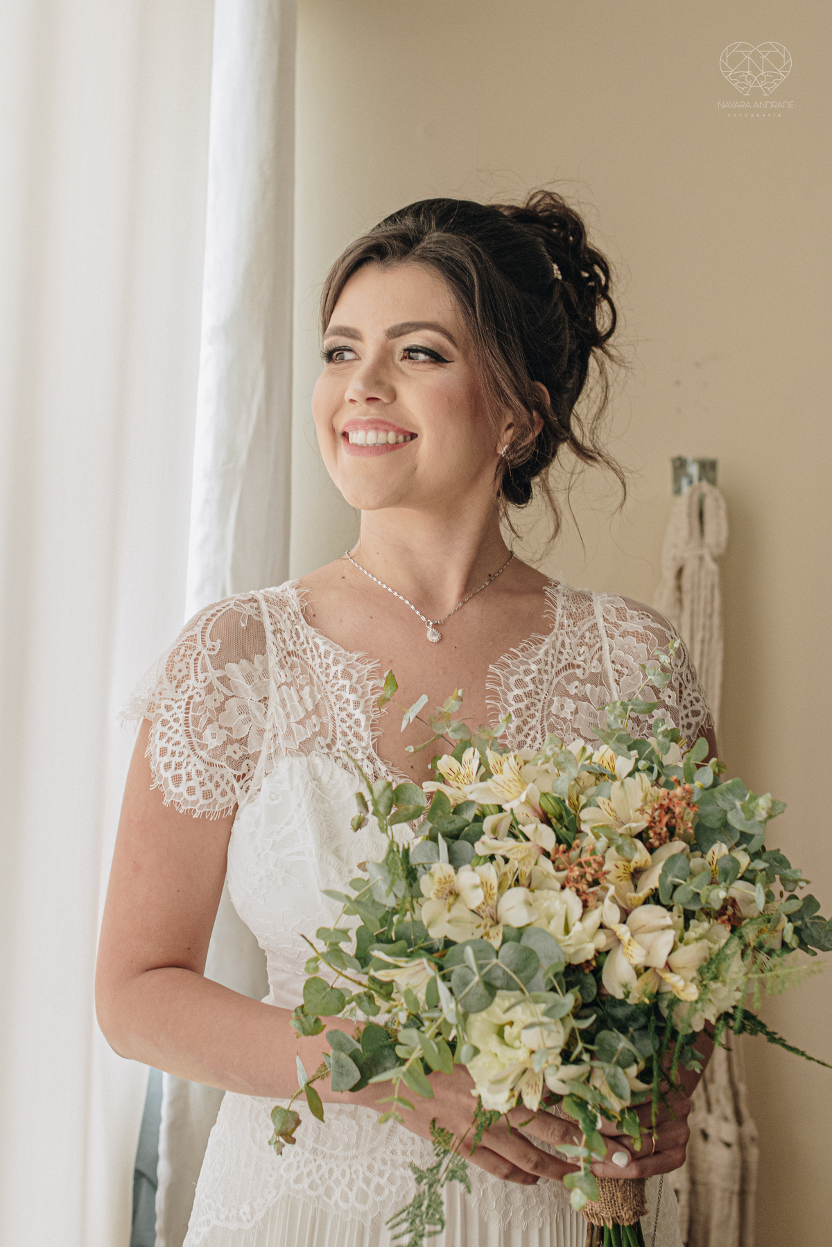 Casamento intimista mini wedding noiva making of se arruma em casa restaurante rustico fotos minimalistas e romanticas feitas com arte pela fotografa premiada nayara andrade de santos sao paulo. Fotografia de retrato da noiva