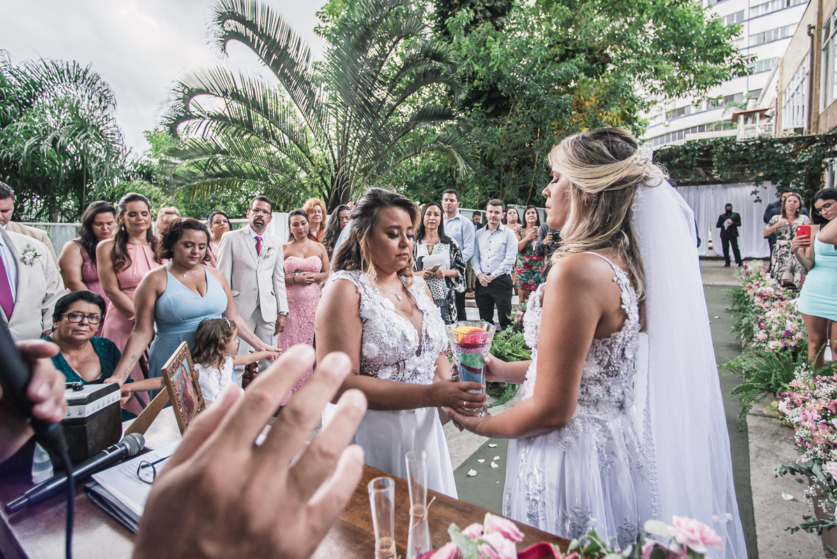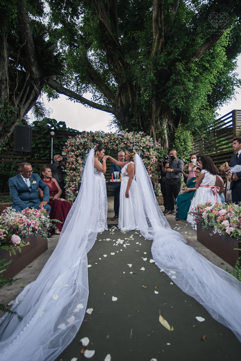 casamento rustico e romantico de dia realizado no espaço plataforma na baixada santista, noivas com vestido romantico e fotografia pela fotografa premiada nayara andrade
