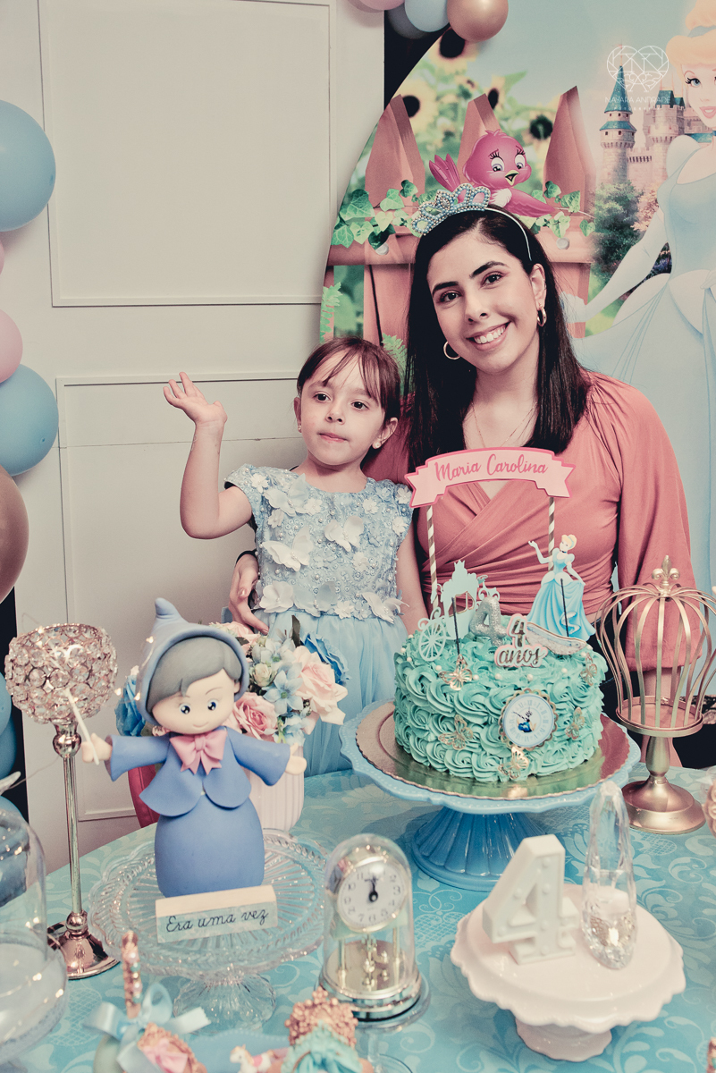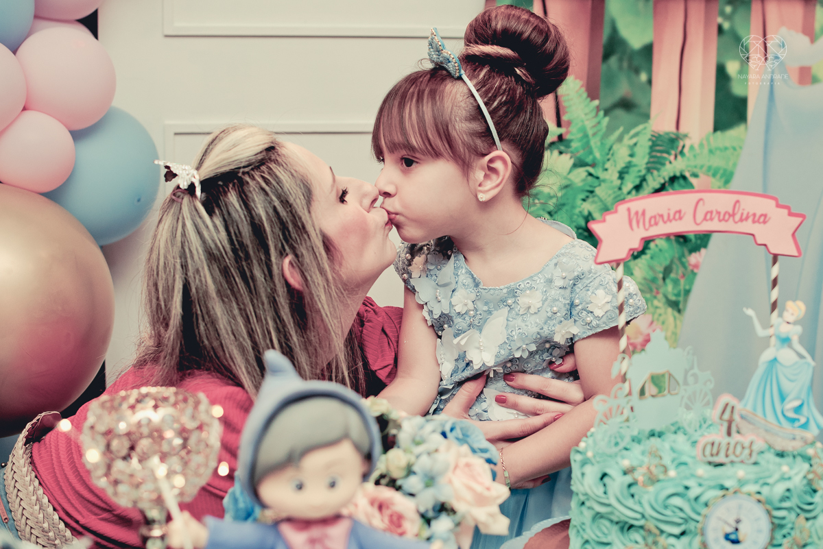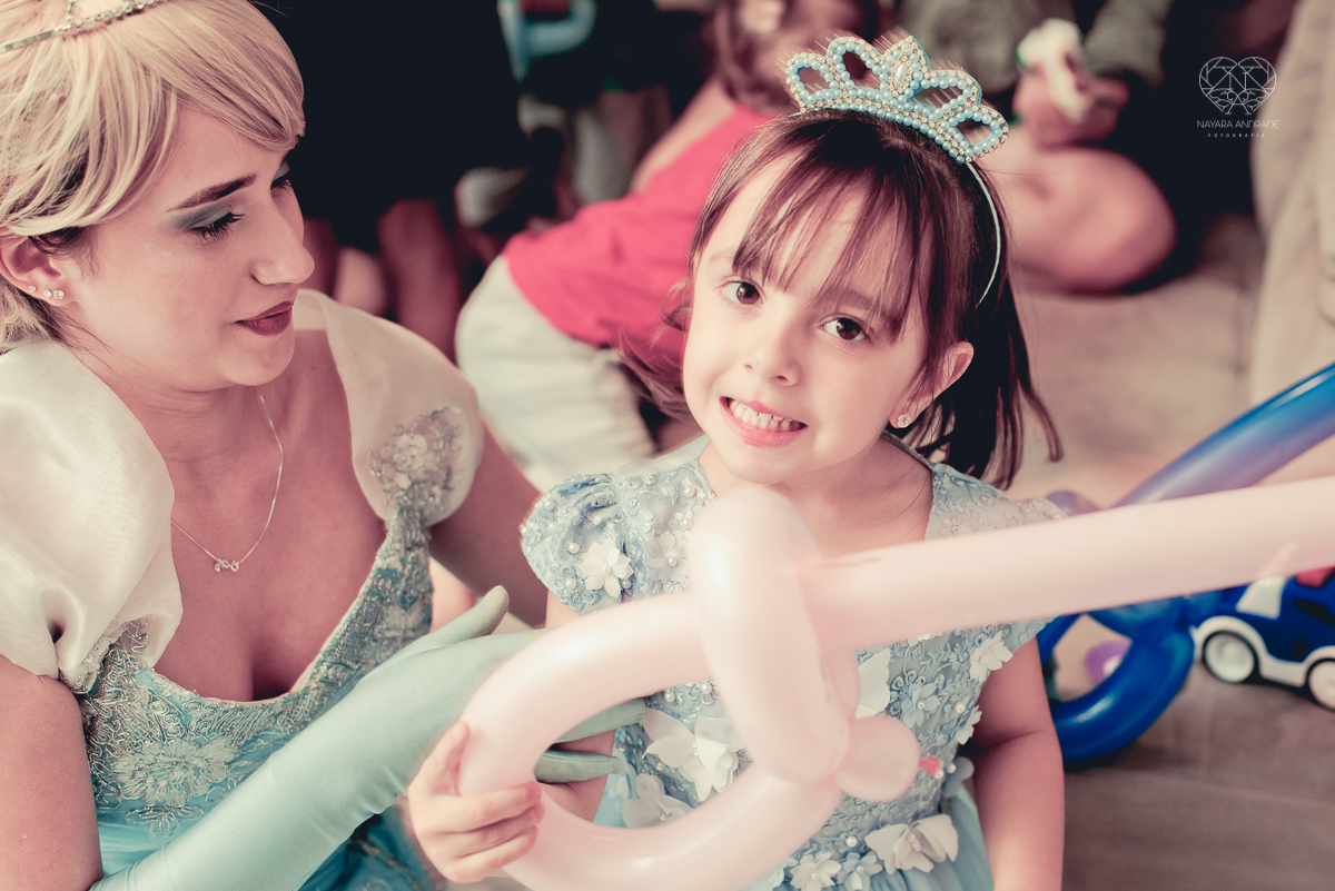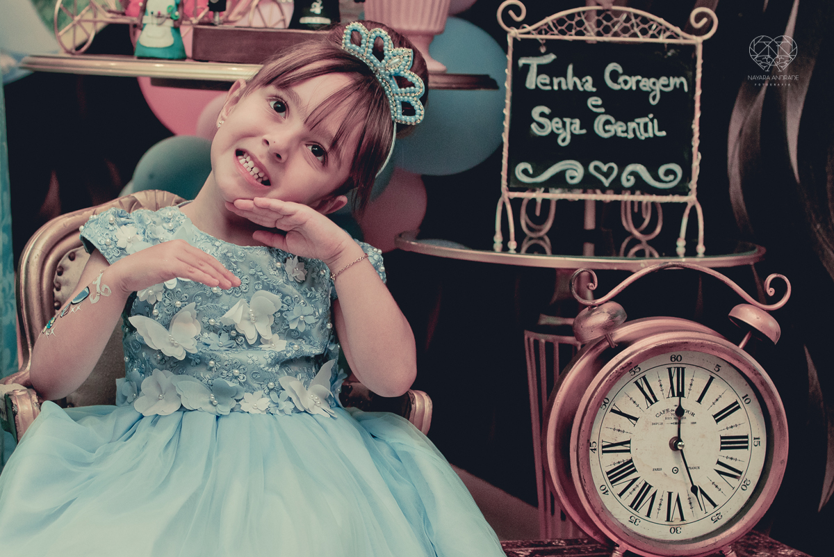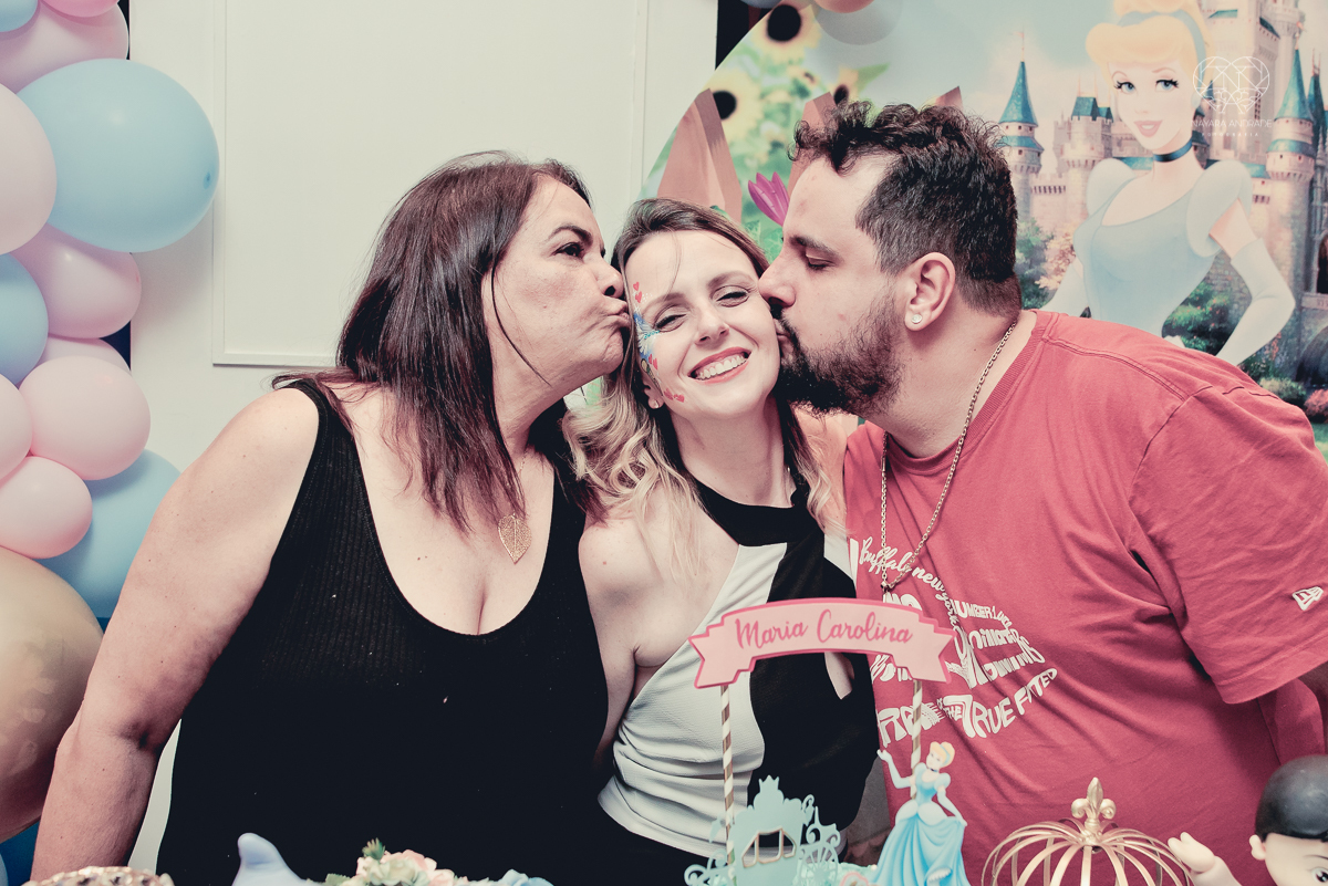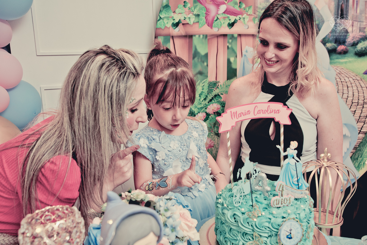 Festa infantil em casa com tema da cinderela fotografado pela fotografa premiada nayara andrade em santos litoral de sao paulo aniversario de menina com quatro anos e familiares na sala de casa fotos com emoção e arte e edição infantil