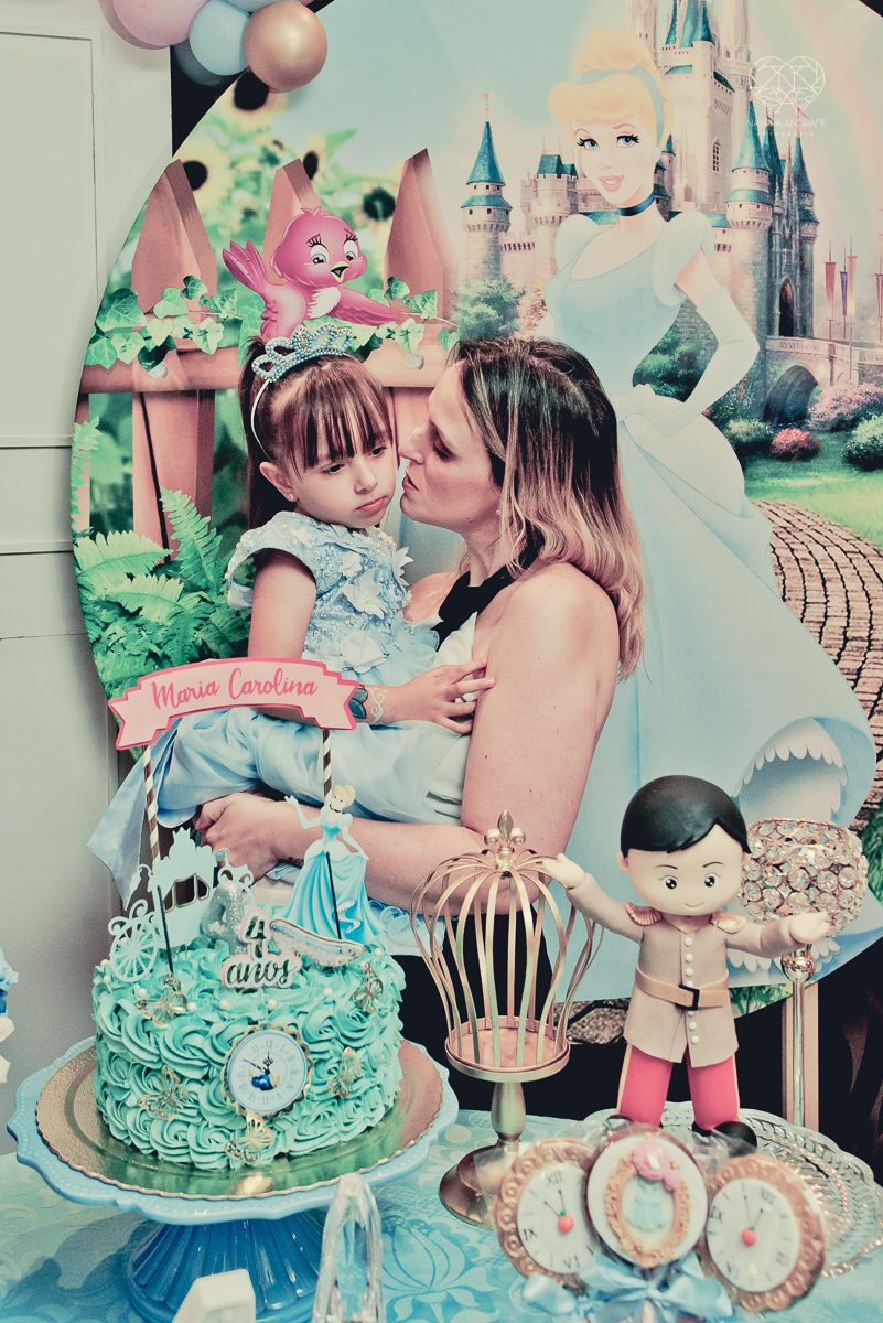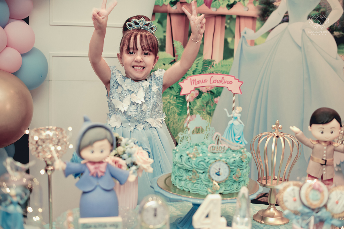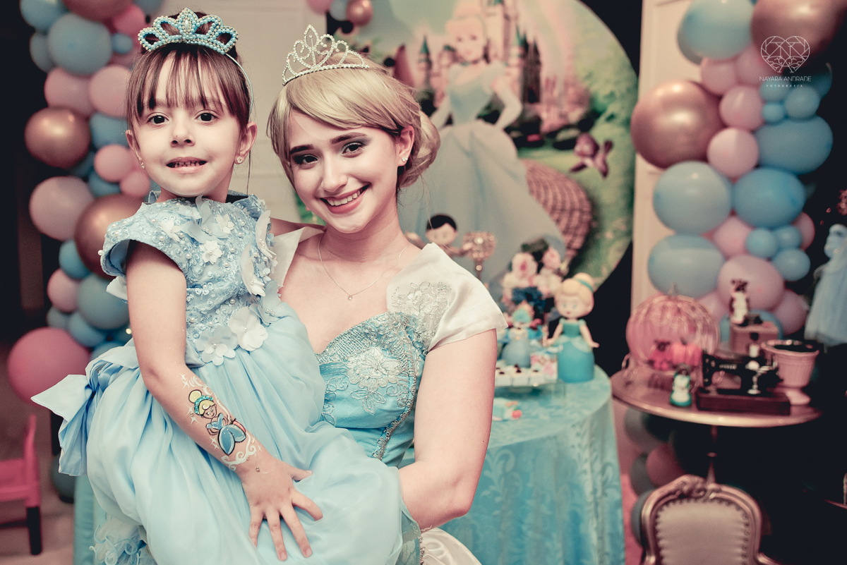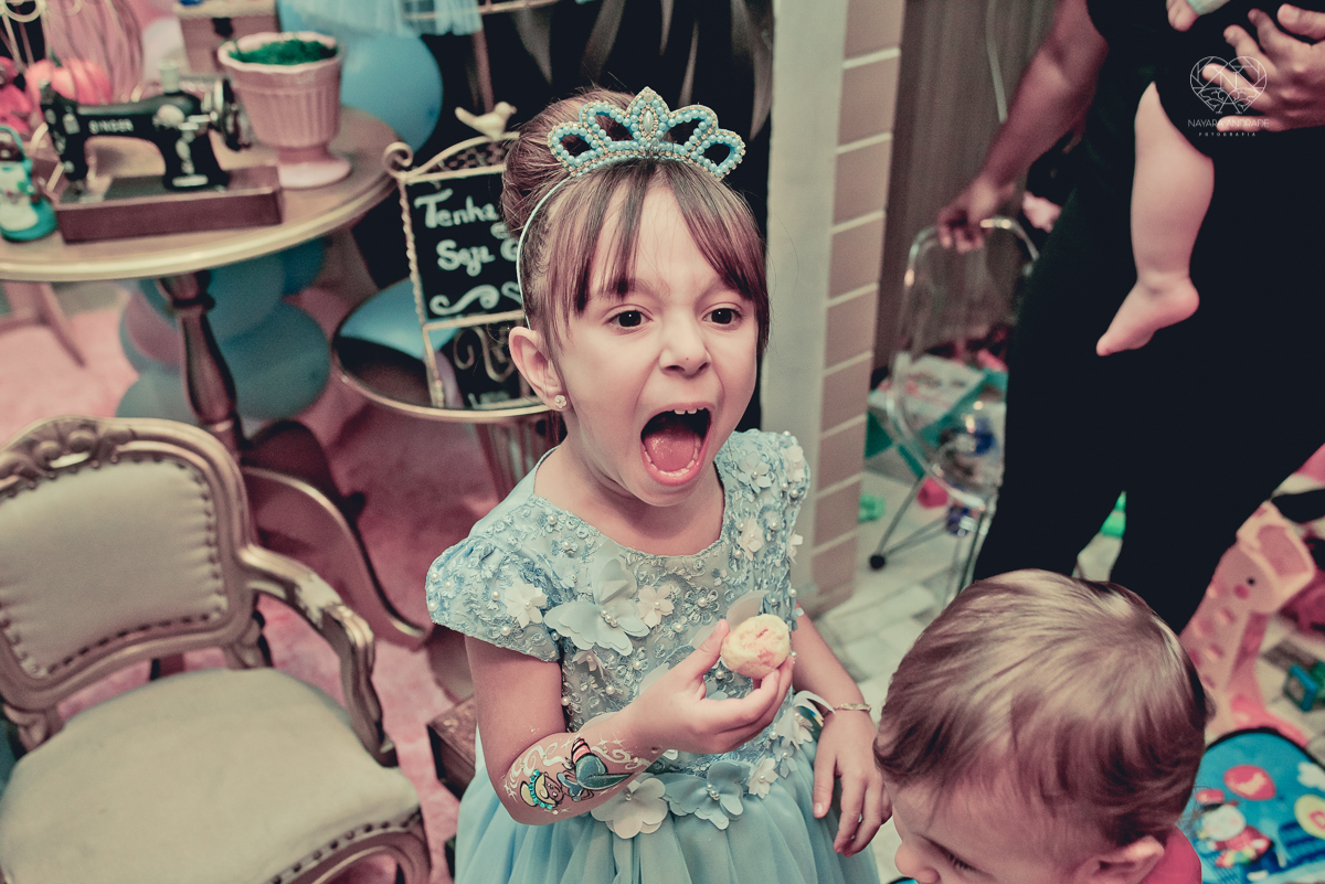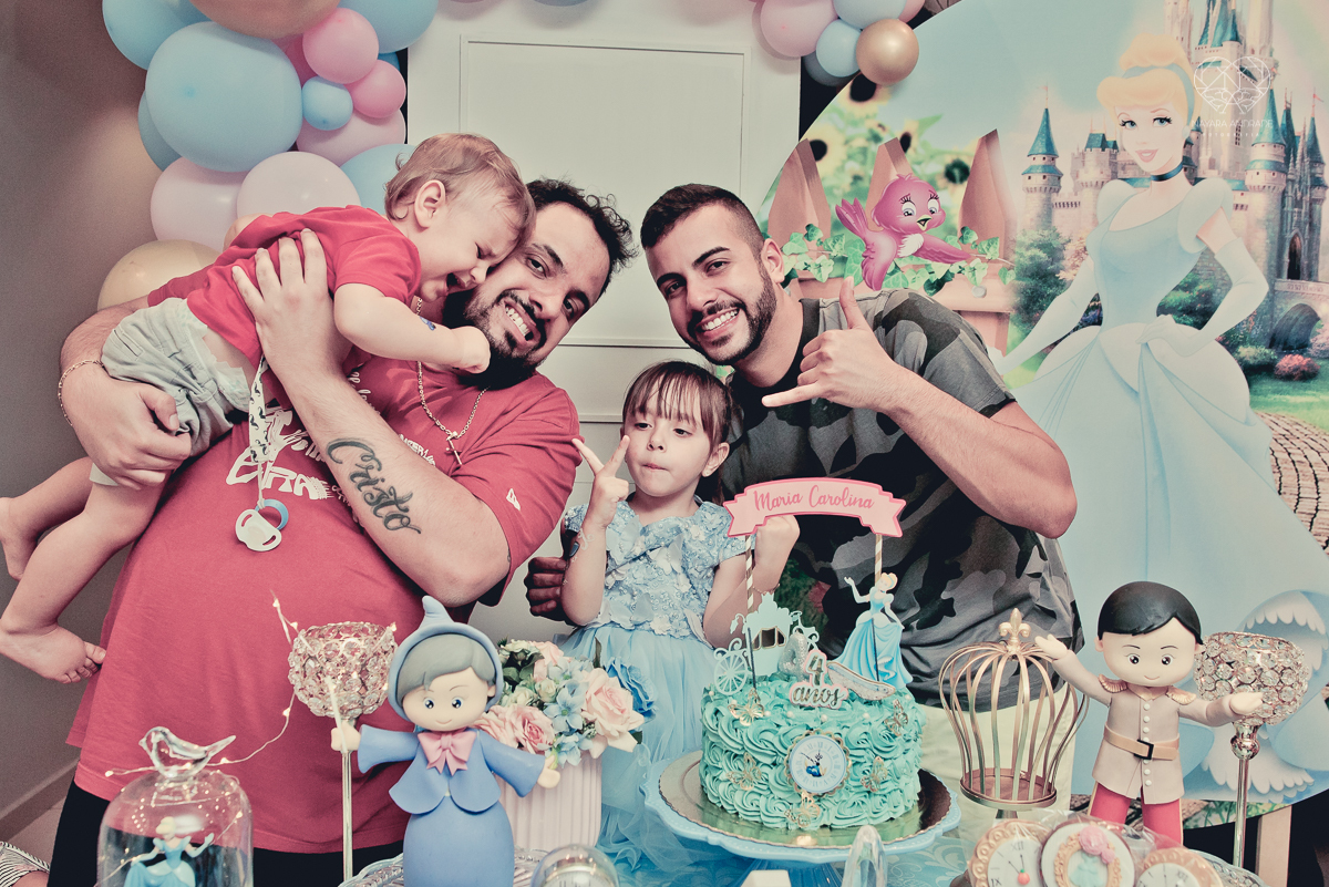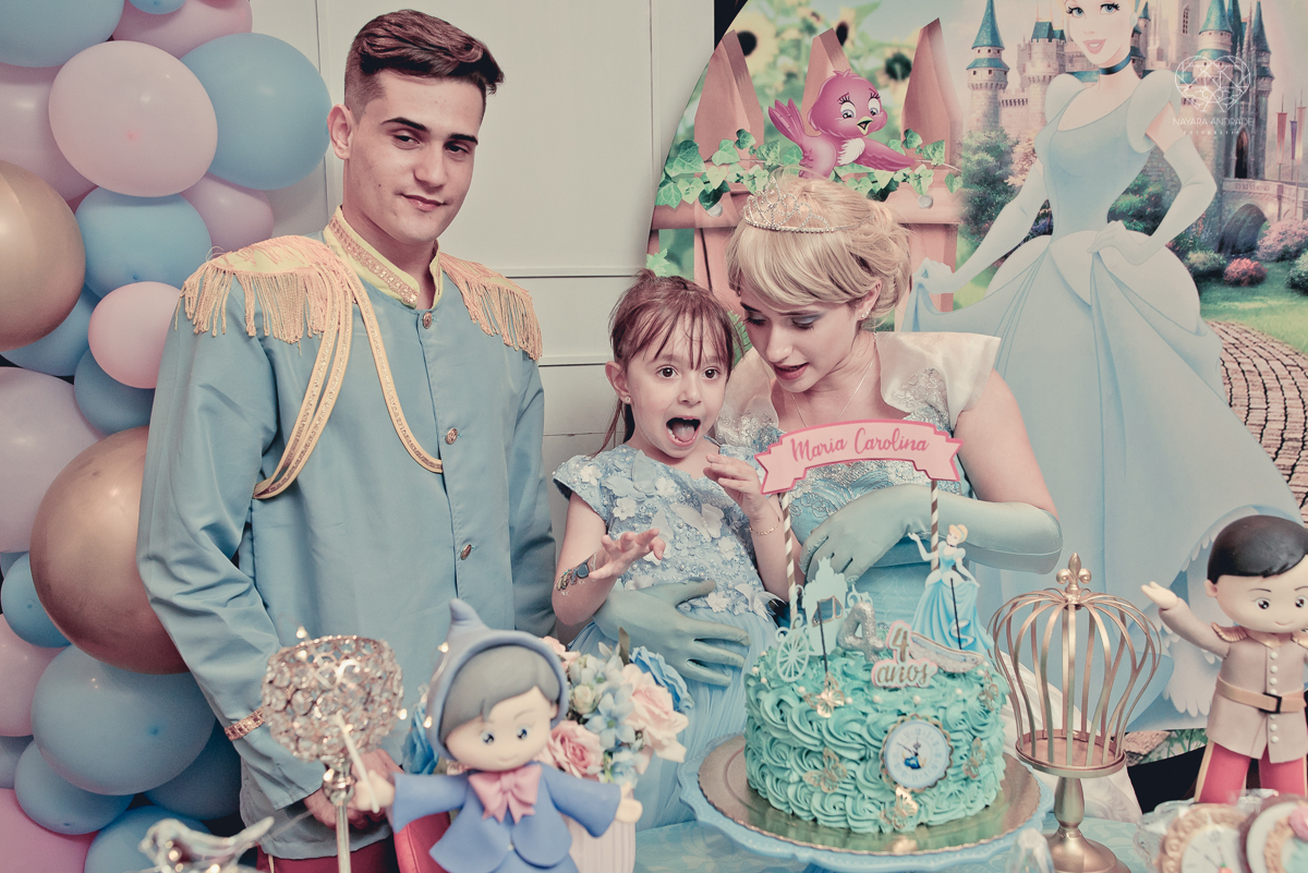 Festa infantil em casa com tema da cinderela fotografado pela fotografa premiada nayara andrade em santos litoral de sao paulo aniversario de menina com quatro anos e familiares na sala de casa fotos com emoção e arte e edição infantil