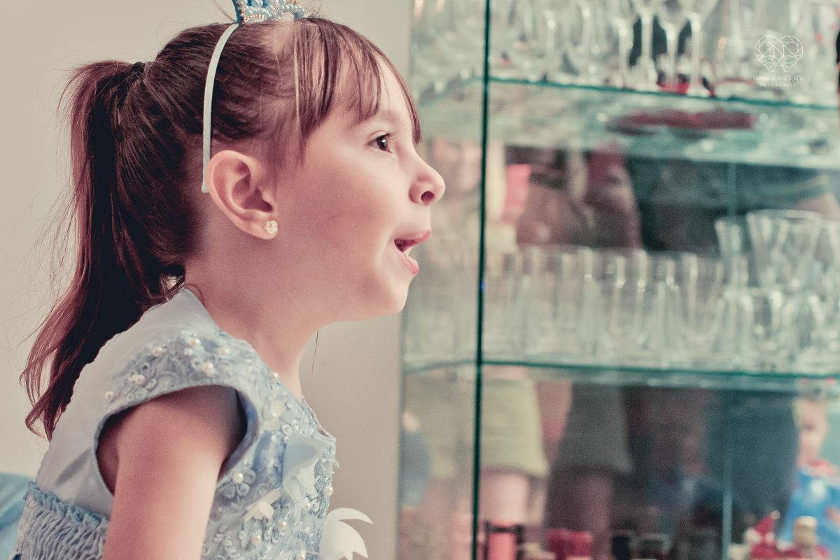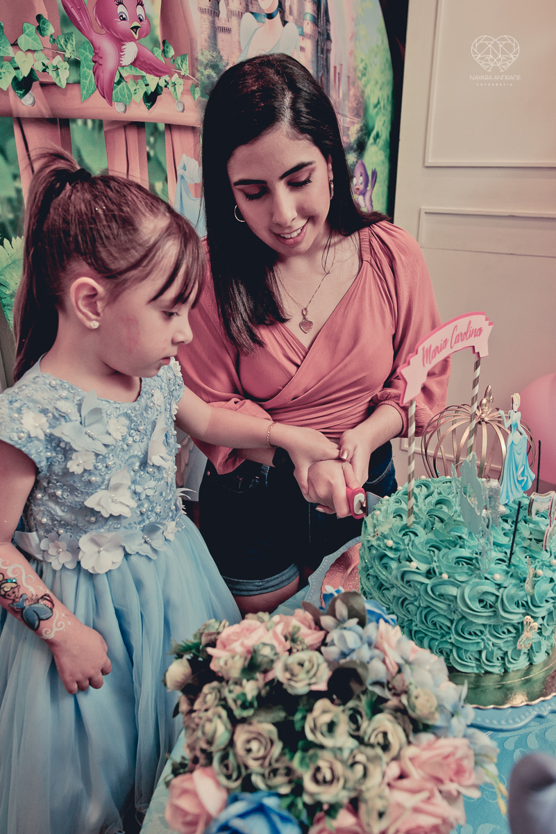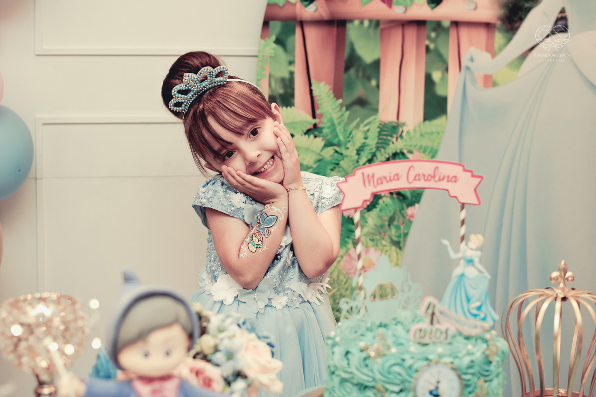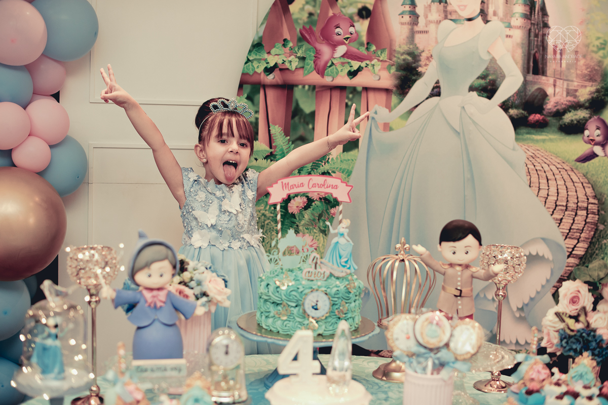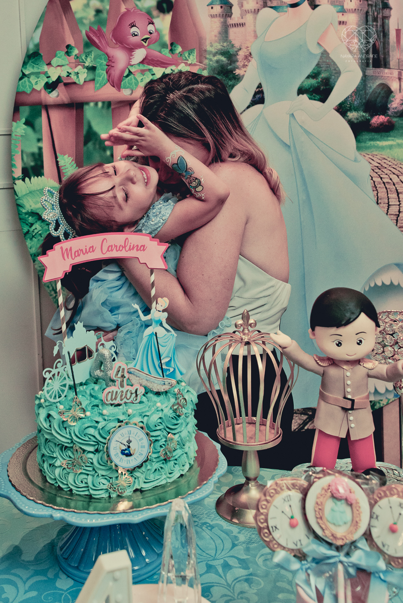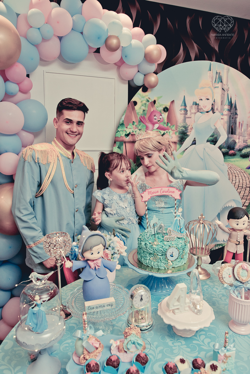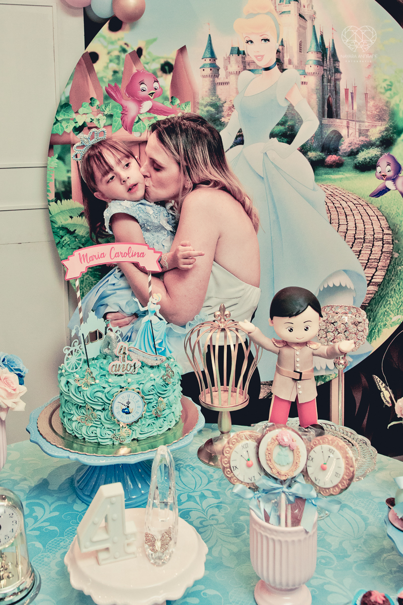 Festa infantil em casa com tema da cinderela fotografado pela fotografa premiada nayara andrade em santos litoral de sao paulo aniversario de menina com quatro anos e familiares na sala de casa fotos com emoção e arte e edição infantil