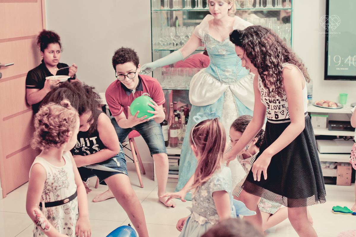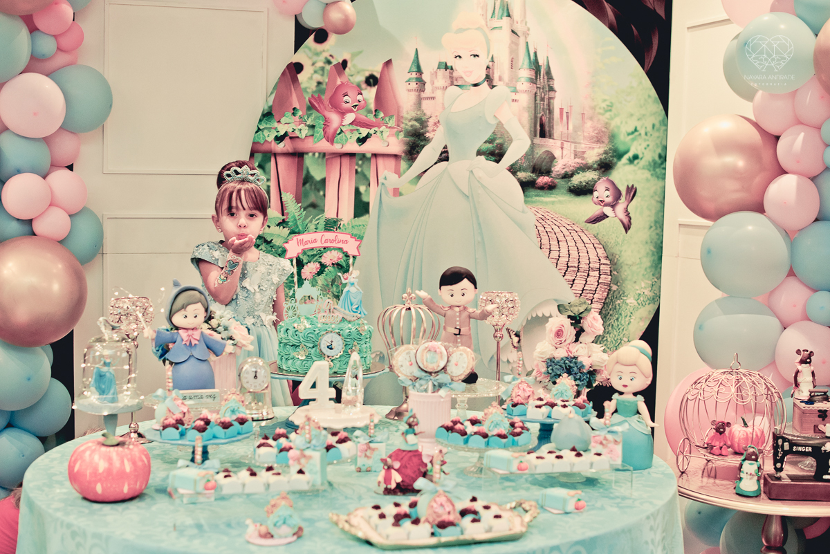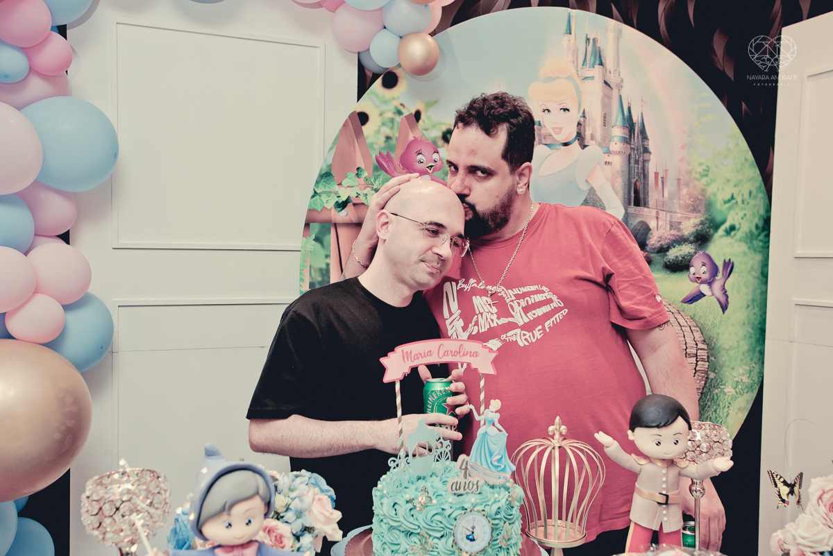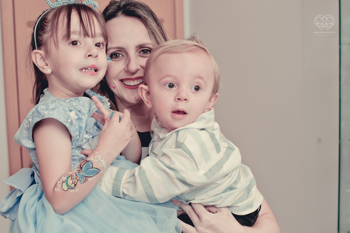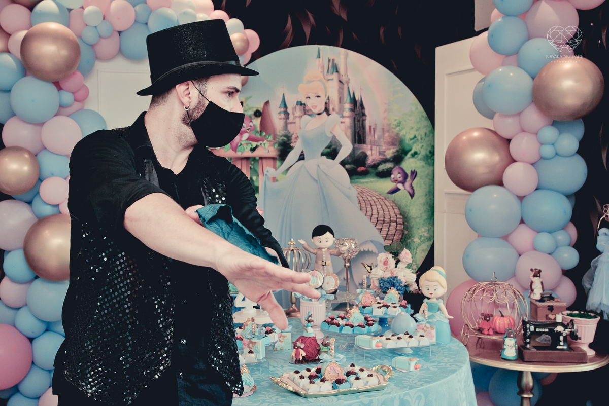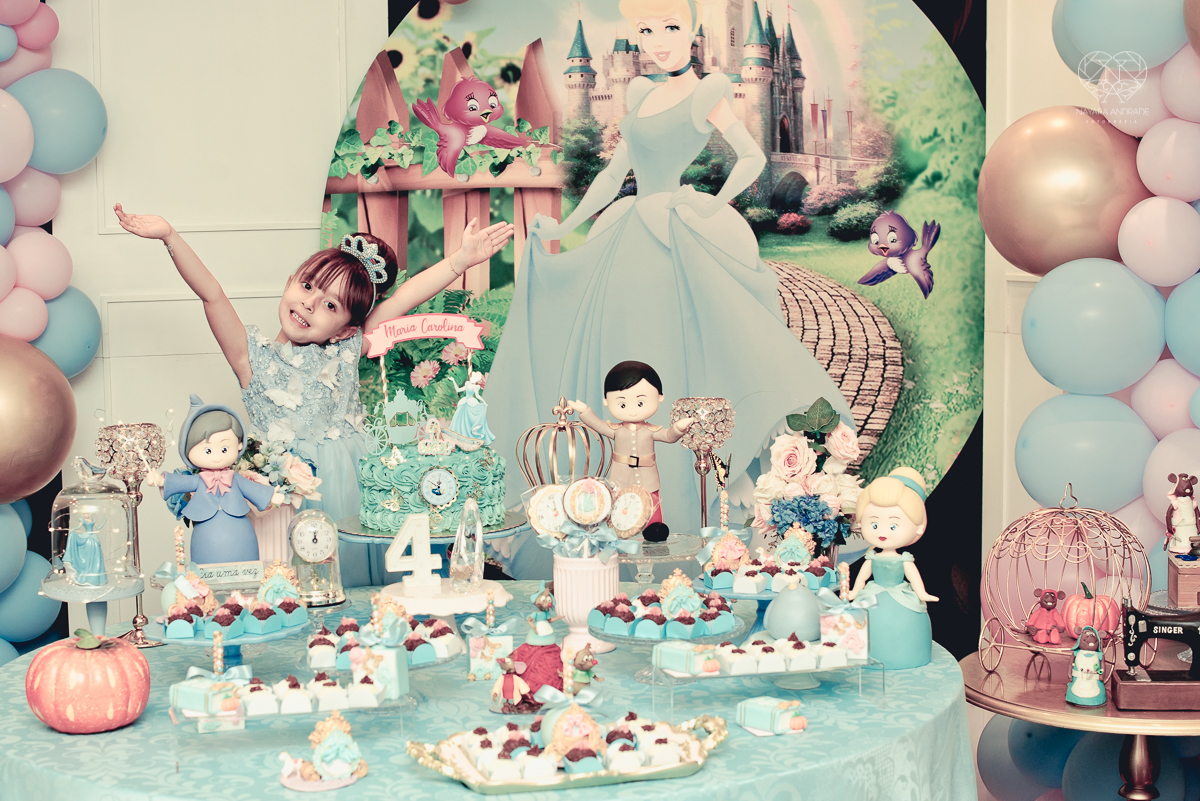 Festa infantil em casa com tema da cinderela fotografado pela fotografa premiada nayara andrade em santos litoral de sao paulo aniversario de menina com quatro anos e familiares na sala de casa fotos com emoção e arte e edição infantil