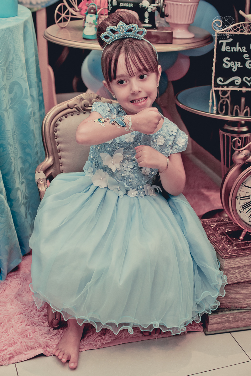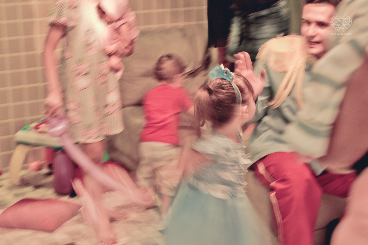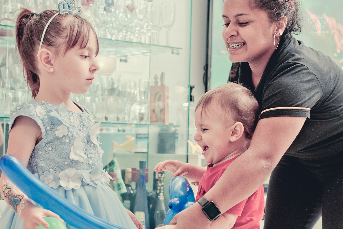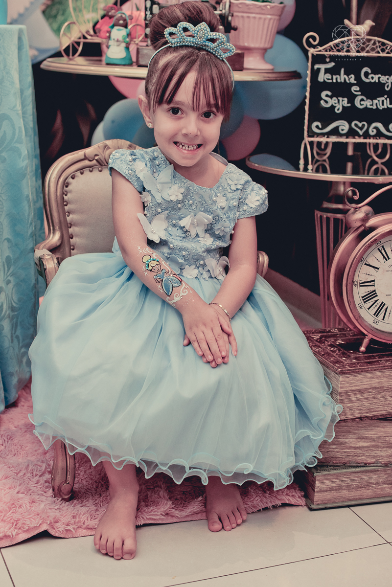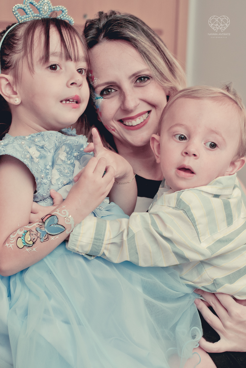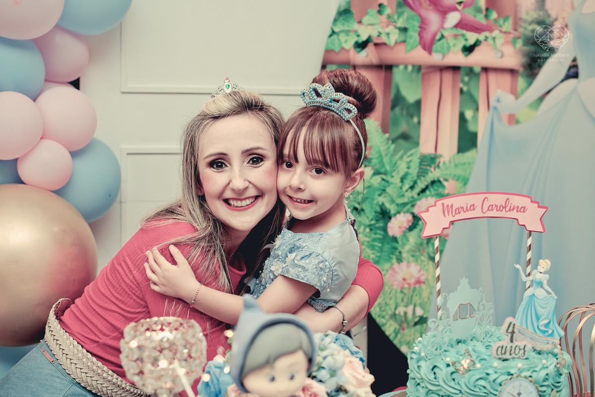 Festa infantil em casa com tema da cinderela fotografado pela fotografa premiada nayara andrade em santos litoral de sao paulo aniversario de menina com quatro anos e familiares na sala de casa fotos com emoção e arte e edição infantil