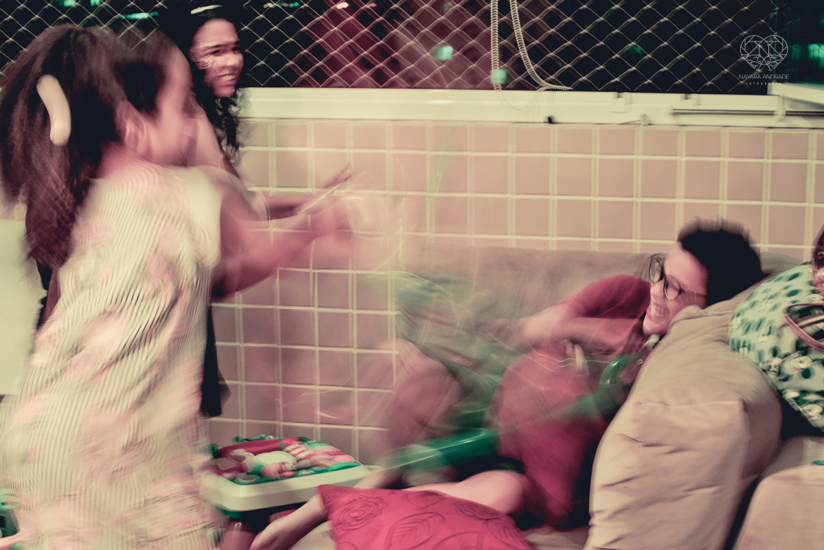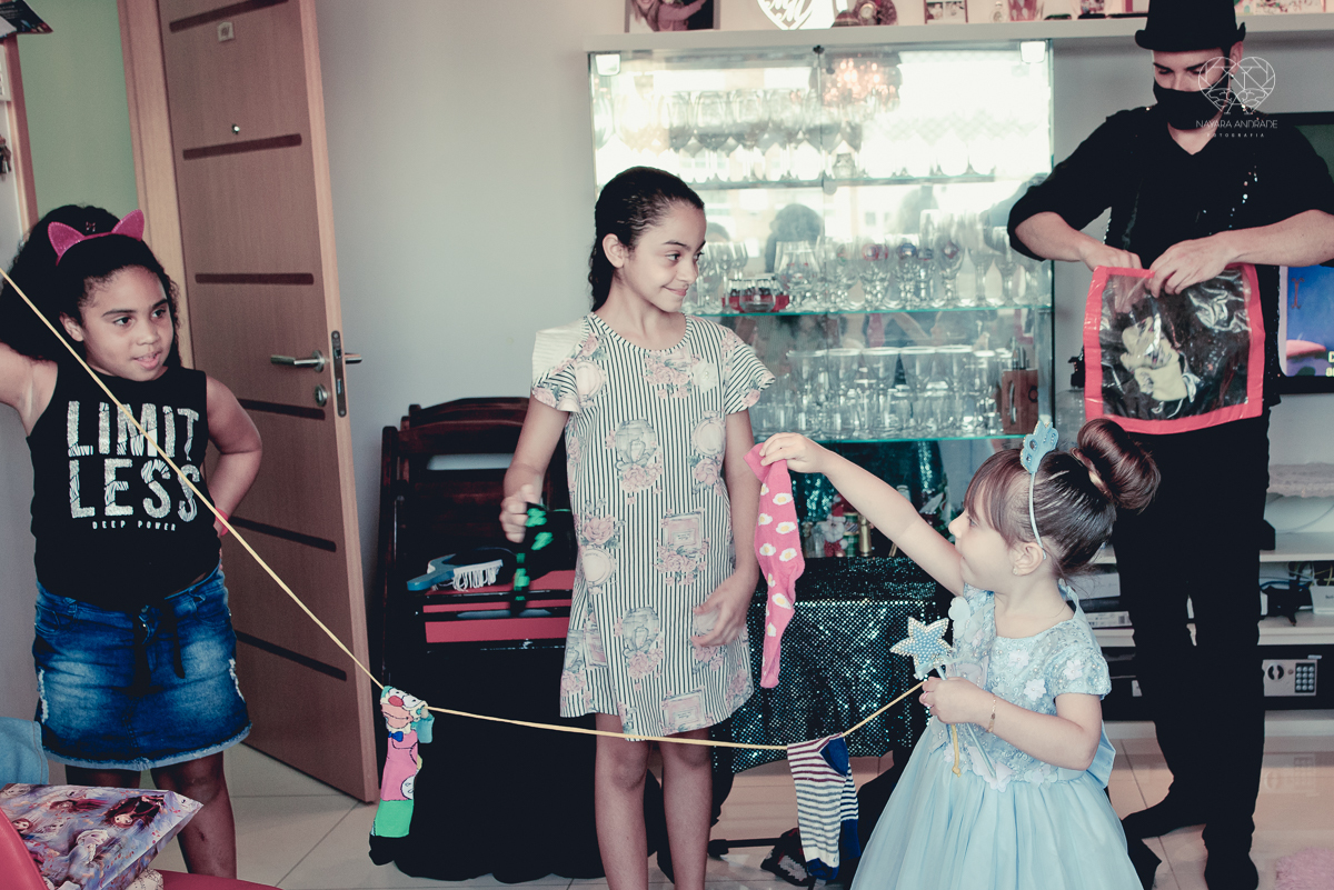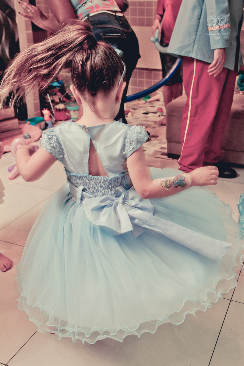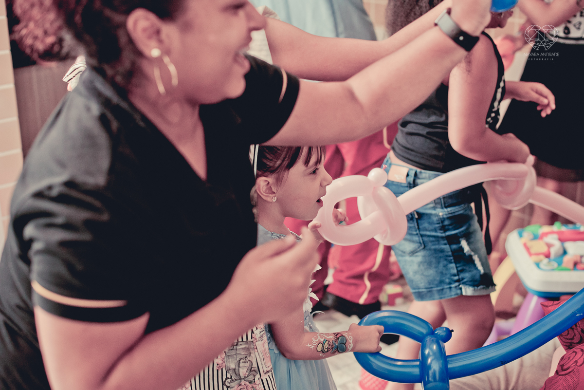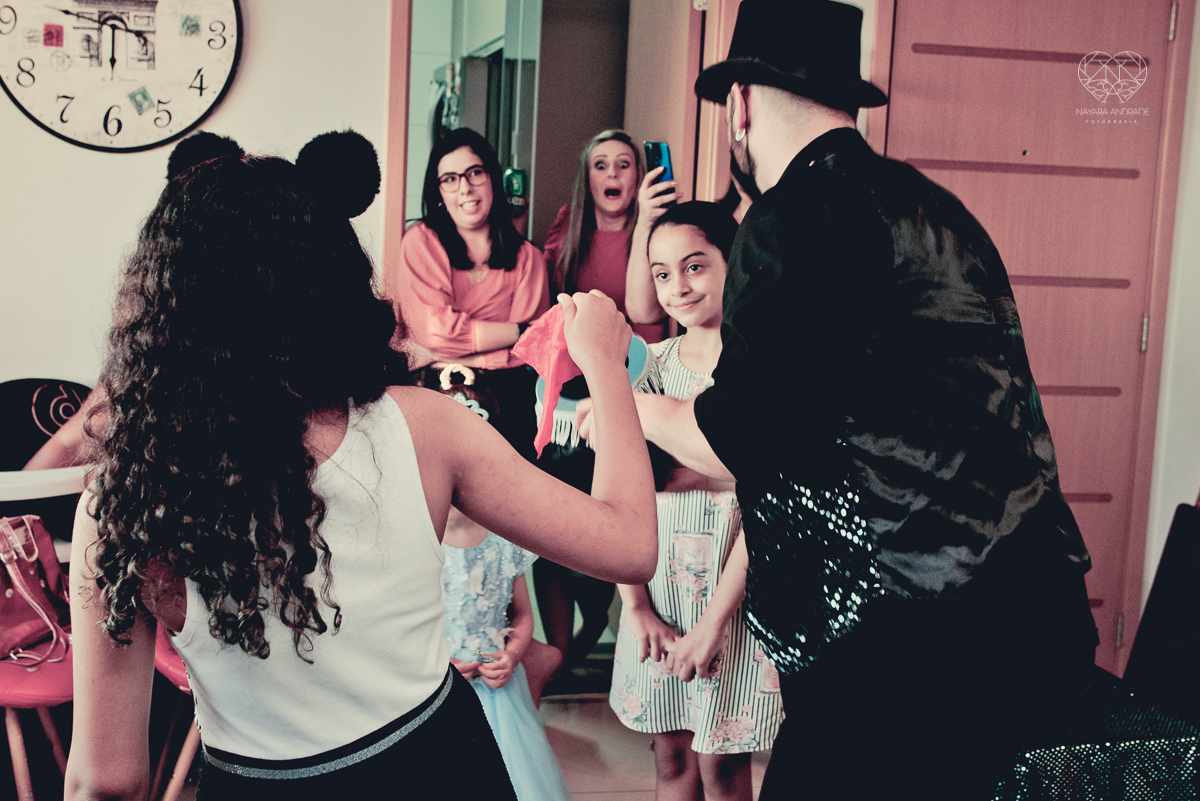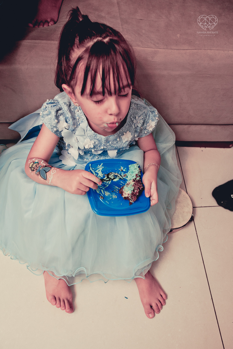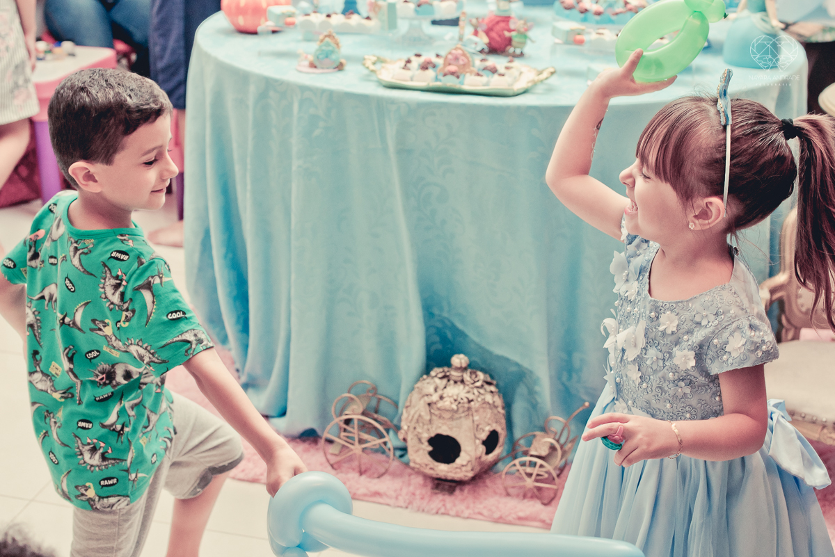 Festa infantil em casa com tema da cinderela fotografado pela fotografa premiada nayara andrade em santos litoral de sao paulo aniversario de menina com quatro anos e familiares na sala de casa fotos com emoção e arte e edição infantil