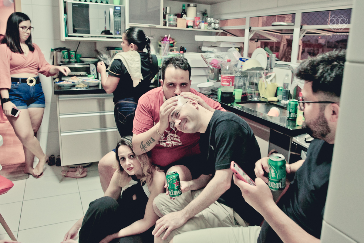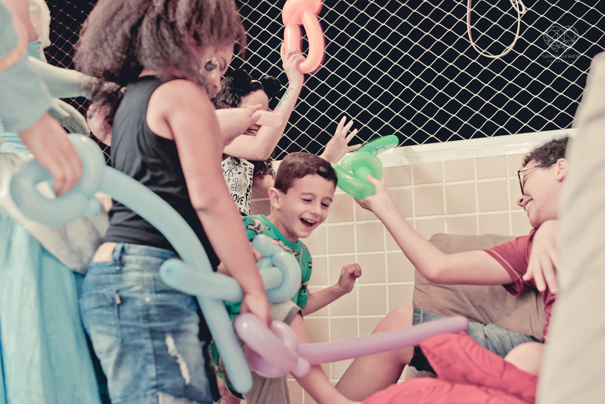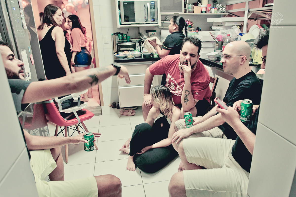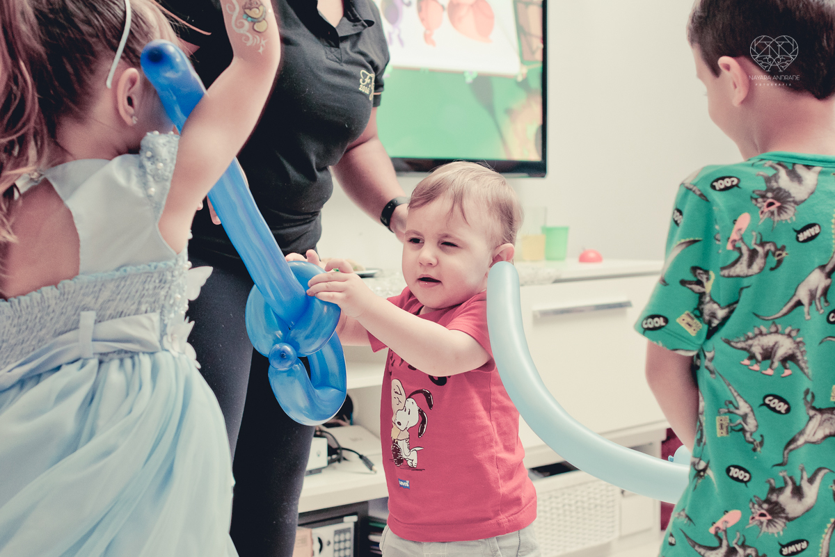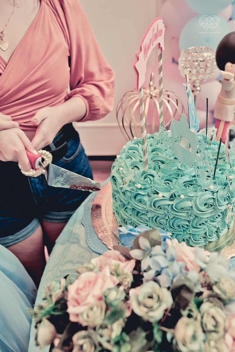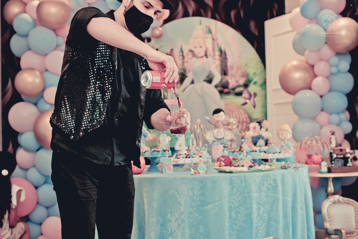 Festa infantil em casa com tema da cinderela fotografado pela fotografa premiada nayara andrade em santos litoral de sao paulo aniversario de menina com quatro anos e familiares na sala de casa fotos com emoção e arte e edição infantil