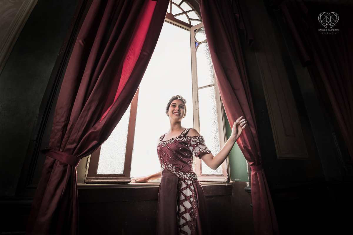 ensaio debutante 15 anos xv tematico com roupa de princesa em um salao classico