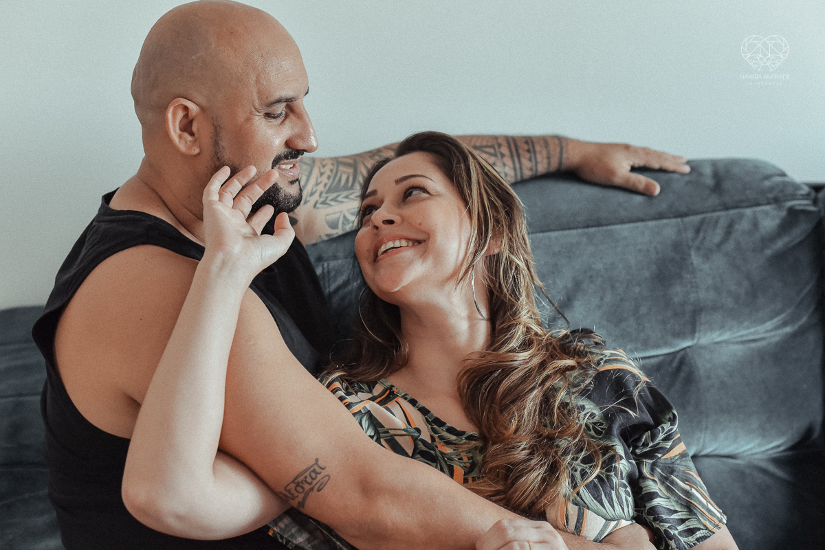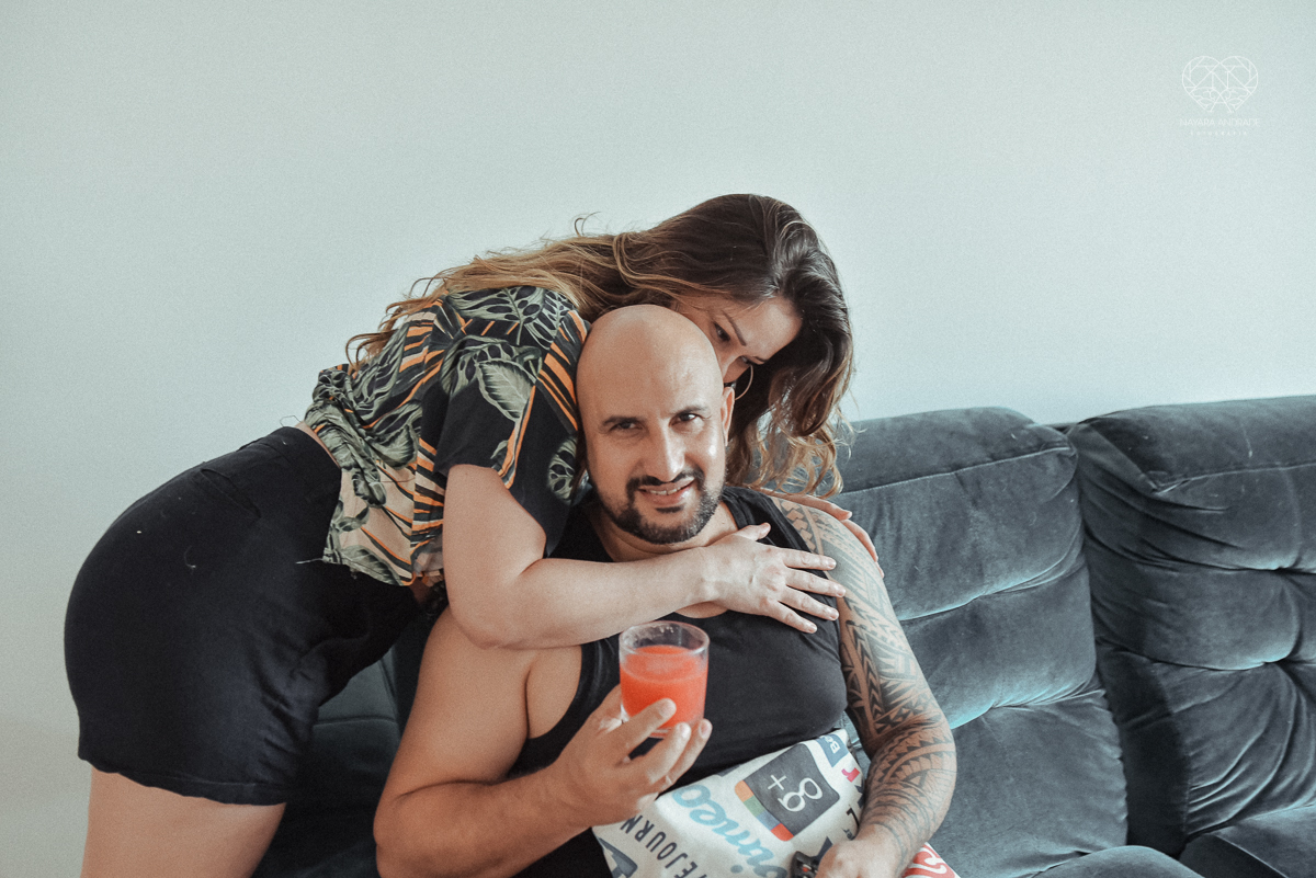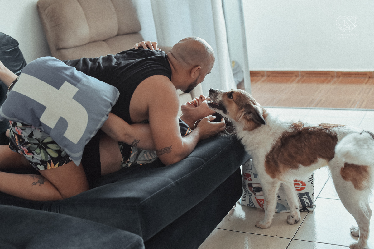 Ensaio casal lifestyke espontaneo e sensual fotografado pela fotografa nayara andrade premiada internacionalmente casal na cama no sofa da sala