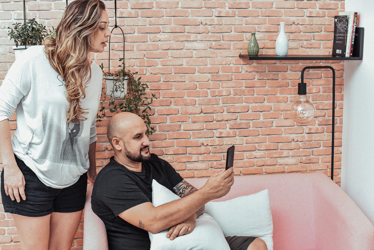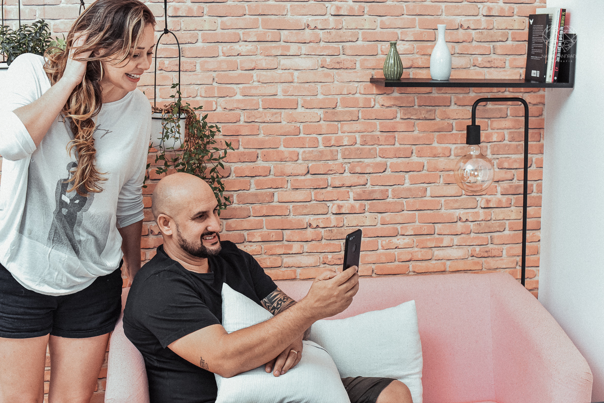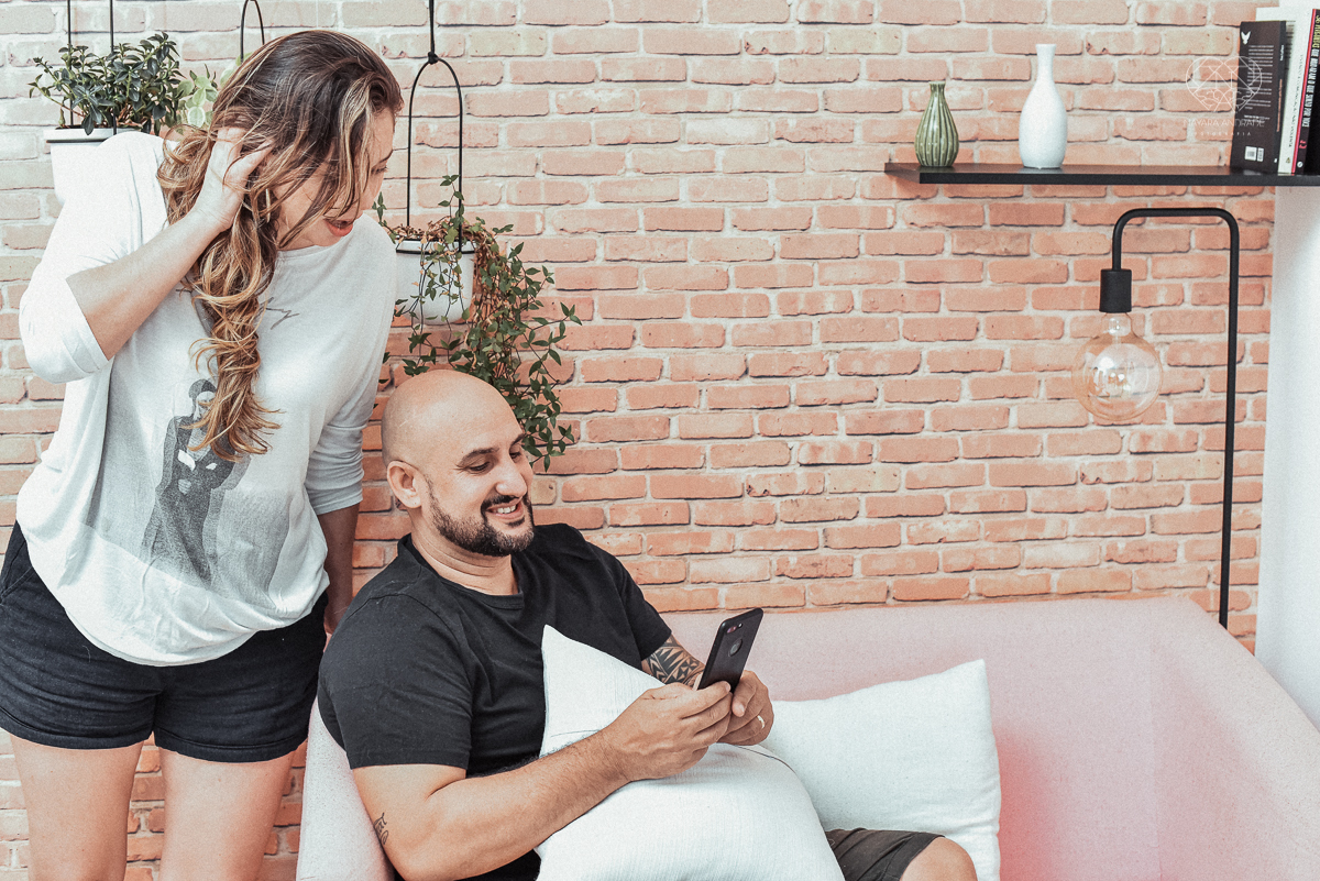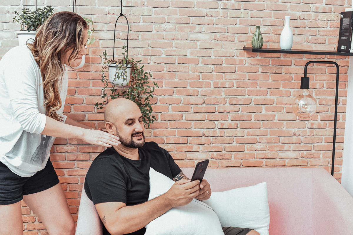 Ensaio casal lifestyke espontaneo e sensual fotografado pela fotografa nayara andrade premiada internacionalmente casal na cama no sofa da sala