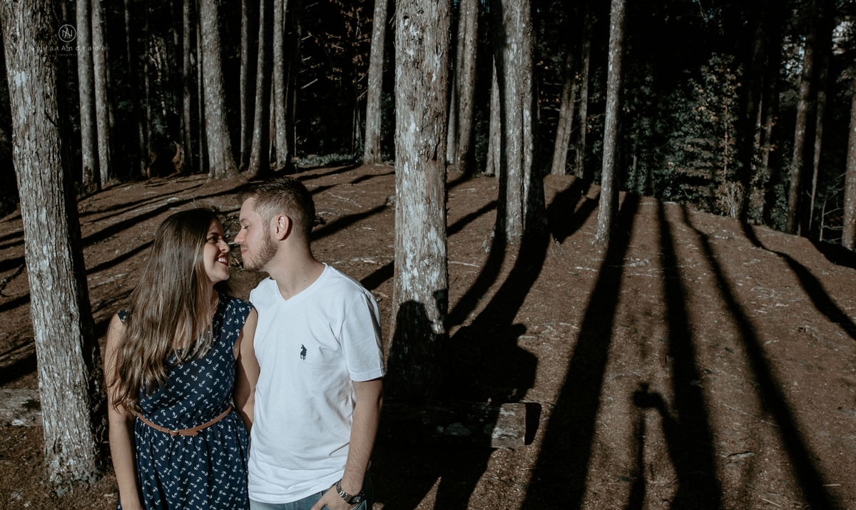 Ensaio casal fim de tarde em campos do Jordão nas folhas, arvores e muito amor envolvido.