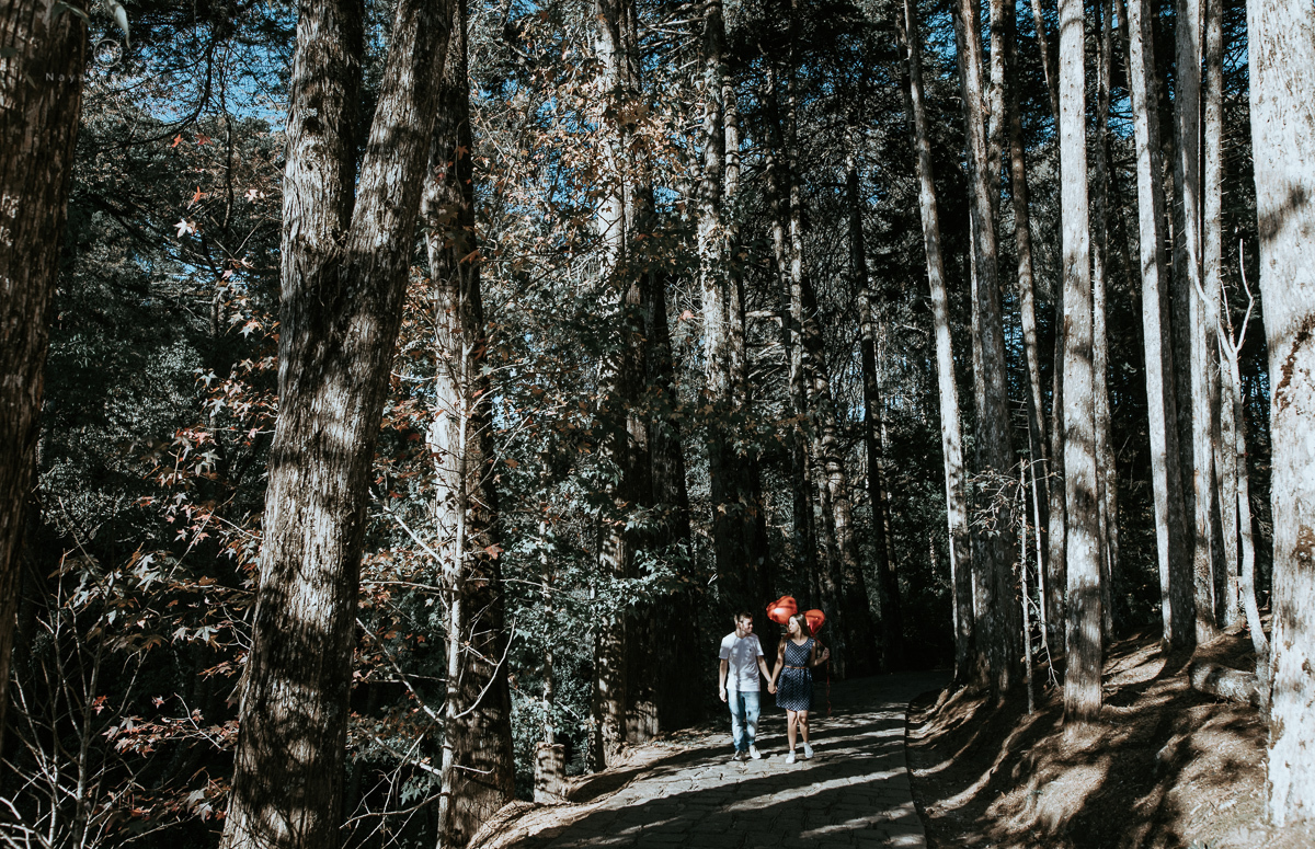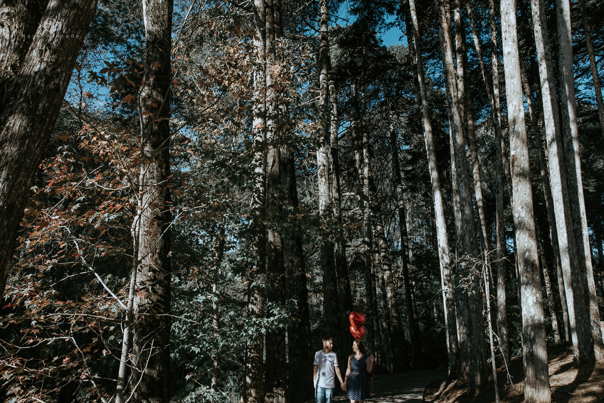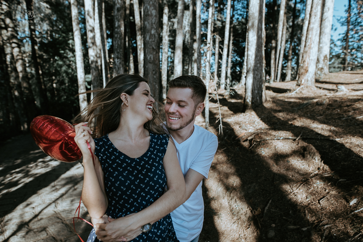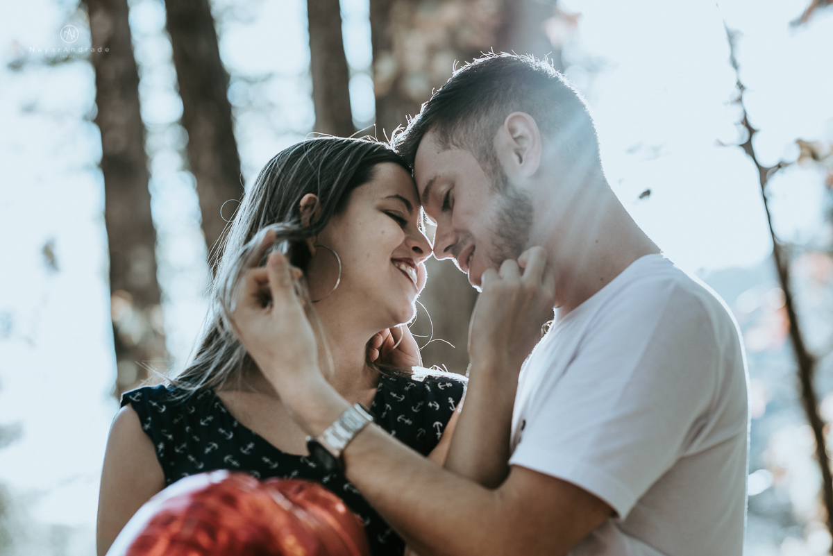 Ensaio casal fim de tarde em campos do Jordão nas folhas, arvores e muito amor envolvido. Balão de coração e data
