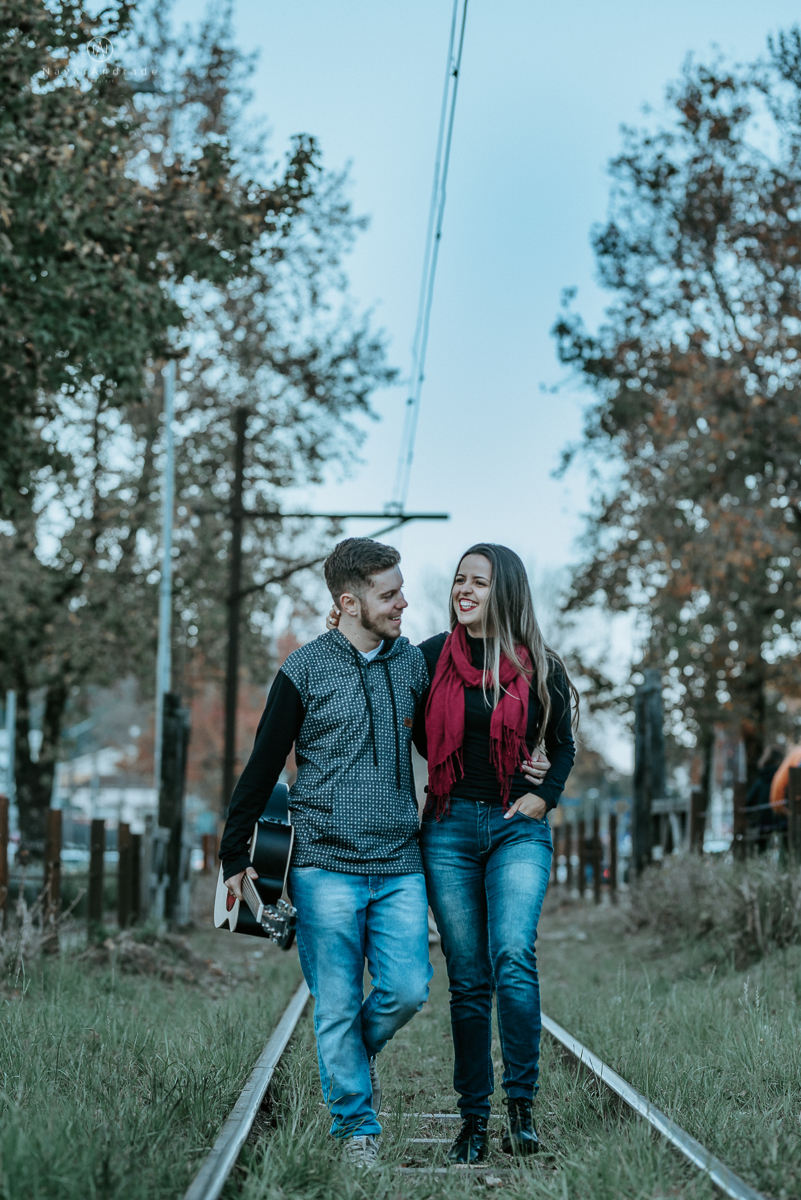 Ensaio casal fim de tarde em campos do Jordão nas folhas, arvores e muito amor envolvido. No trilho do trem em Capivari