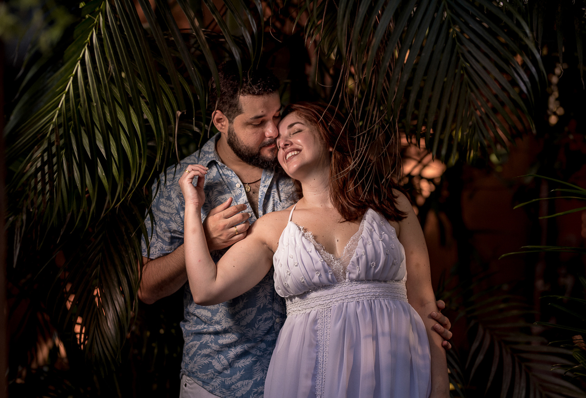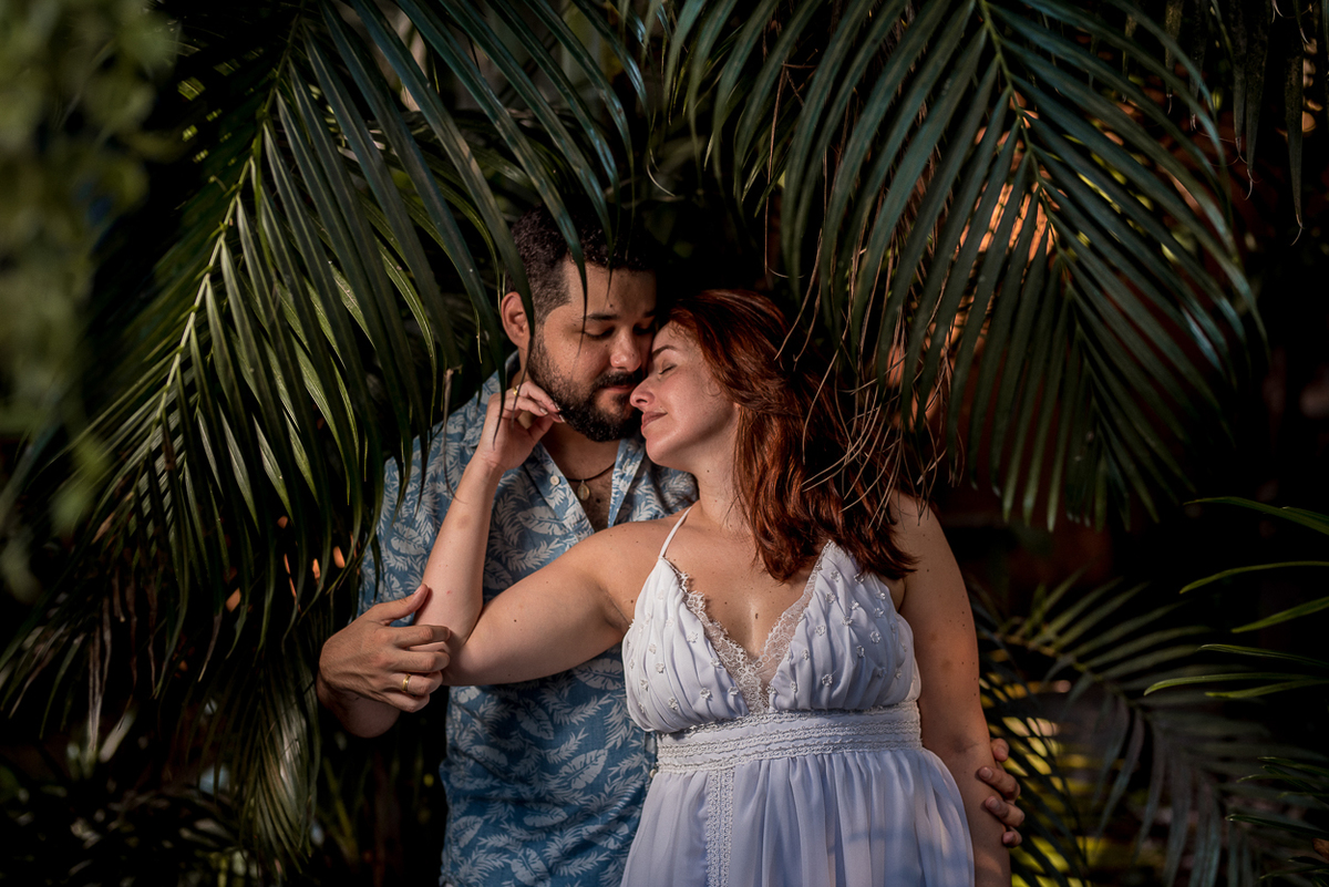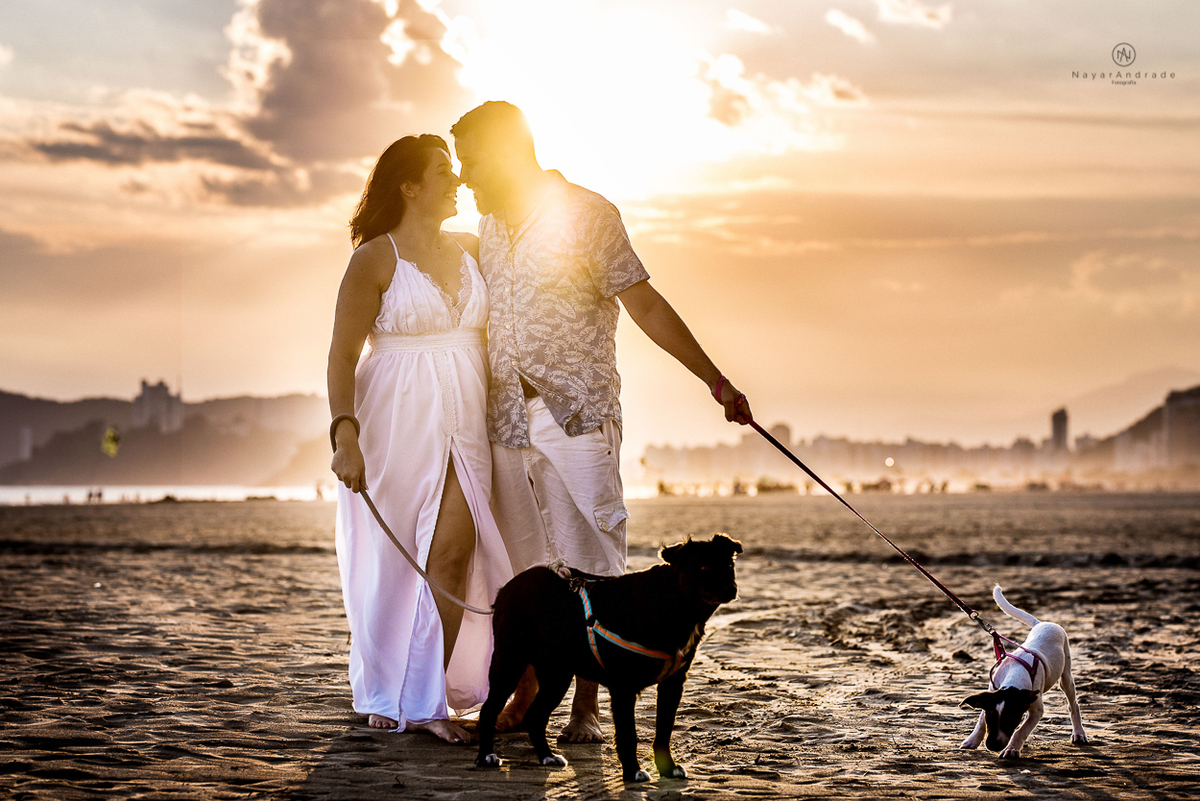 ensaio de casal apaixonado feito em um fim de tarde no jardim com cachorrinhos e muita foto linda de por do sol