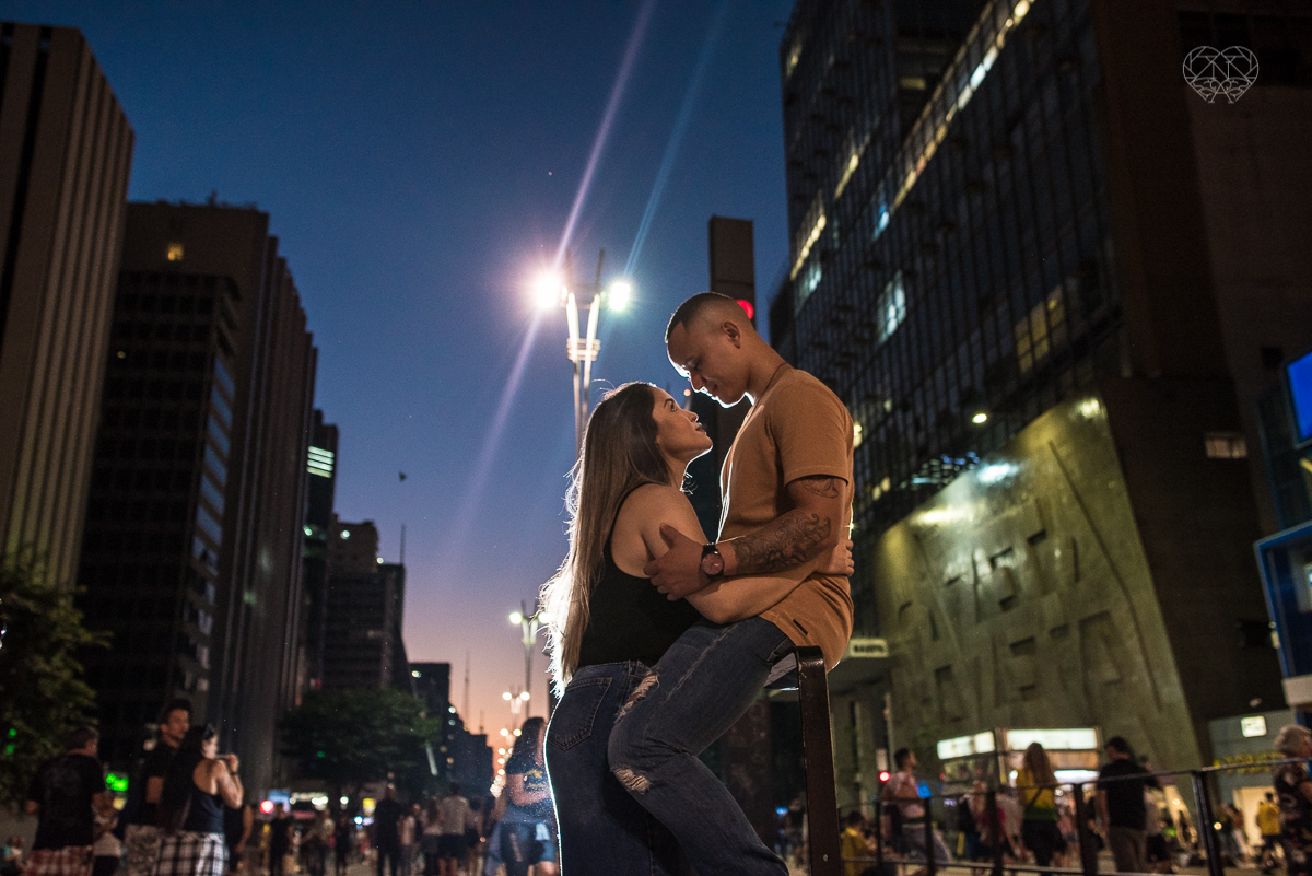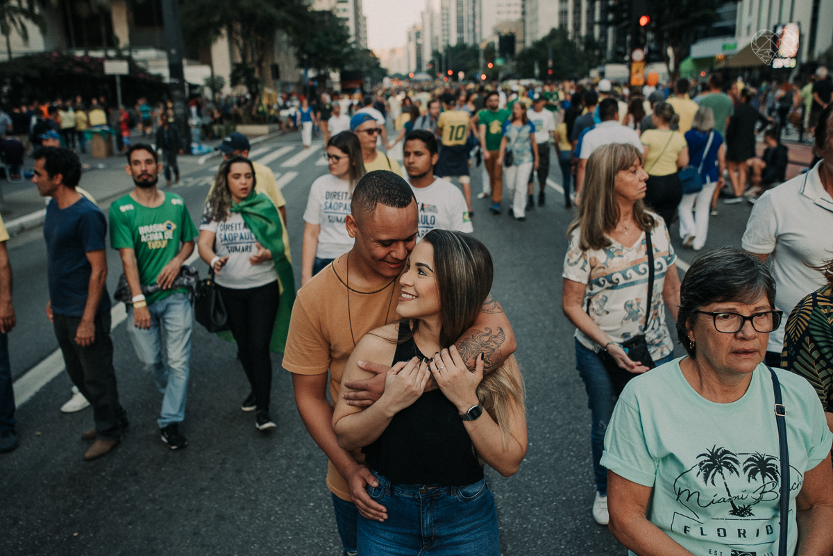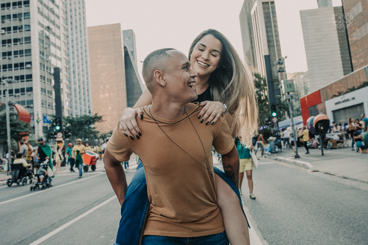 Quando a beleza esta no amor, qualquer lugar fica mágico! De todos as mais lindas paisagens eles preferiram voltar a locais que marcaram todo o período de noivado e namoro. Tudo começou em um parque de diversões a quase 10 anos atrás ( sim, 10 anos rs) e desde sempre o Felipe dizia que ali as fotos fariam sentido. Em todo estes anos o passeio a av Paulista, shoppings e uma tal de forever 21 (rs) eram ponto de parada obrigatória, só não imaginávamos uma multidão na rua em um protesto político. Cancela? Jamais! Usamos todas as situações a nosso favor e o resultado é este que estão vendo. Algo leve, divertido, um pouco tímido ( né Mari), mas lindo! Pois mostra aquilo que mais buscamos em cada imagem: A verdade dos casais!