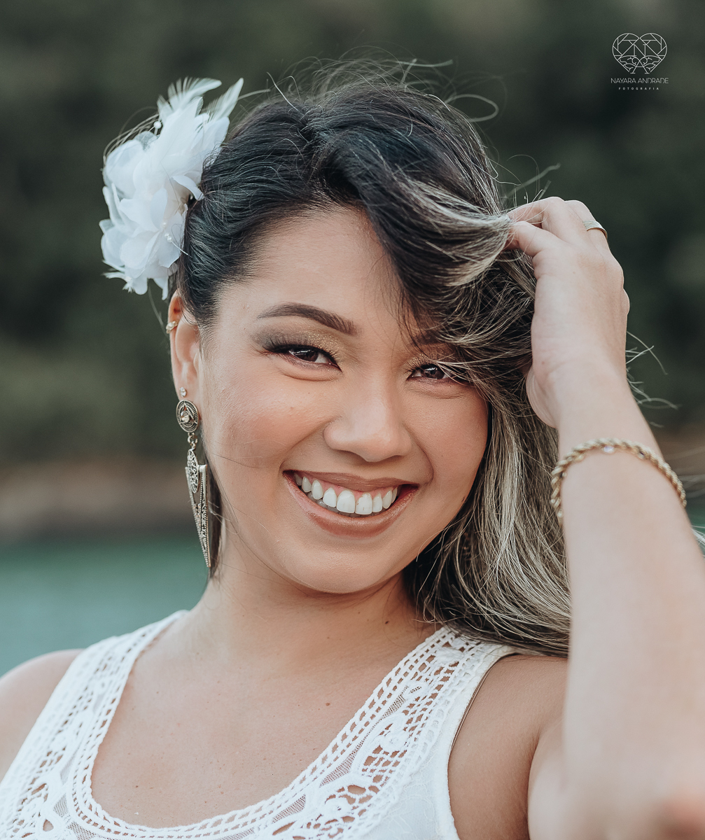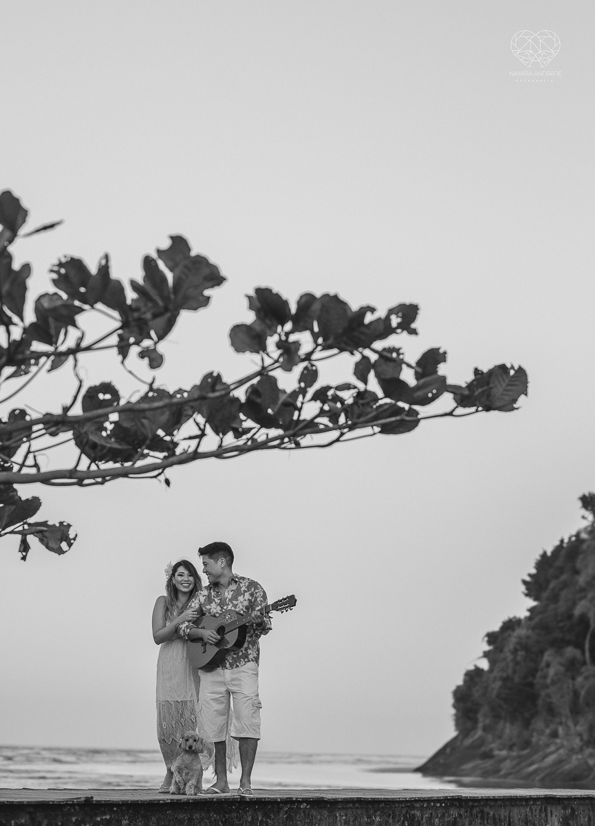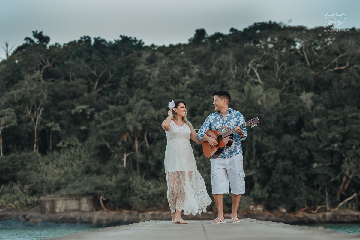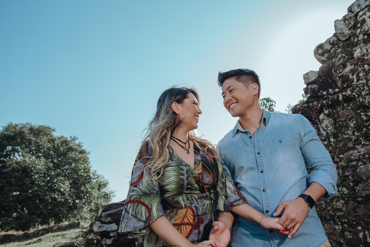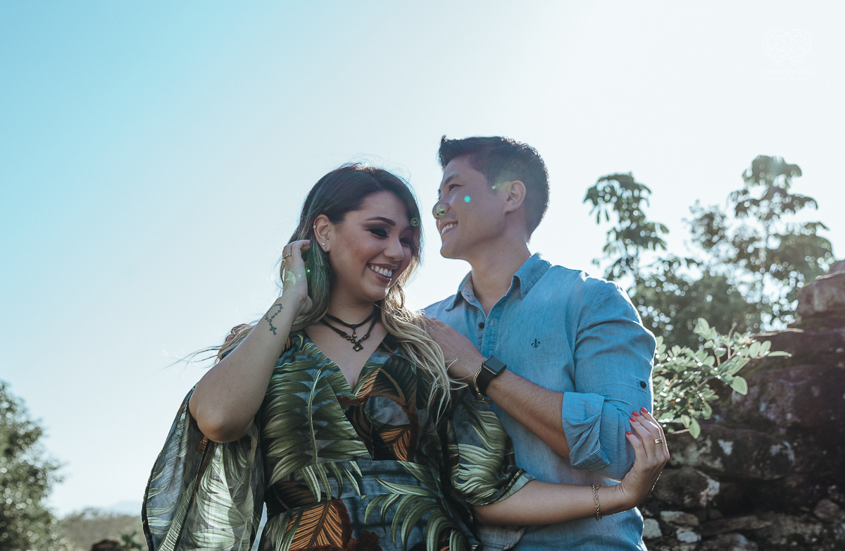 Ensaio pre wedding de casal japones niponico feito em itariri em sao paulo pela fotografa premiada nayara andrade. Noivo de camisa jeans e noiva de roupa floridaEnsaio pre wedding de casal japones niponico feito em itariri em sao paulo pela fotografa prem